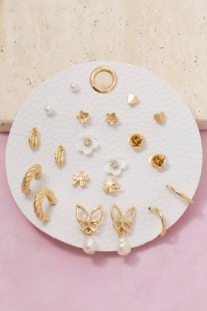 • This pair of earrings displays a vibrant assorted ten pair flower set style. Immerse yourself in the world of understated glamour as this pair of earrings effortlessly exudes timeless appeal.