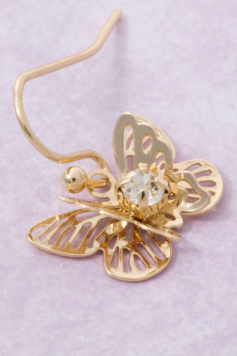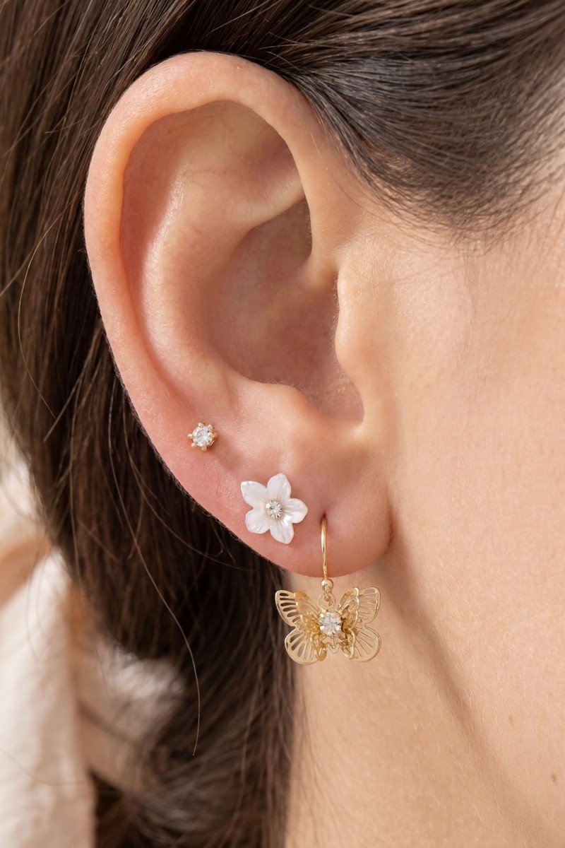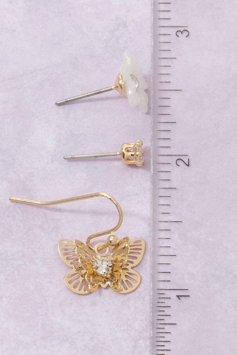 • This pair of earrings brings a luxurious butterfly and flower set style. Experience the joy of accessorizing with this piece that effortlessly combines versatility and charm.