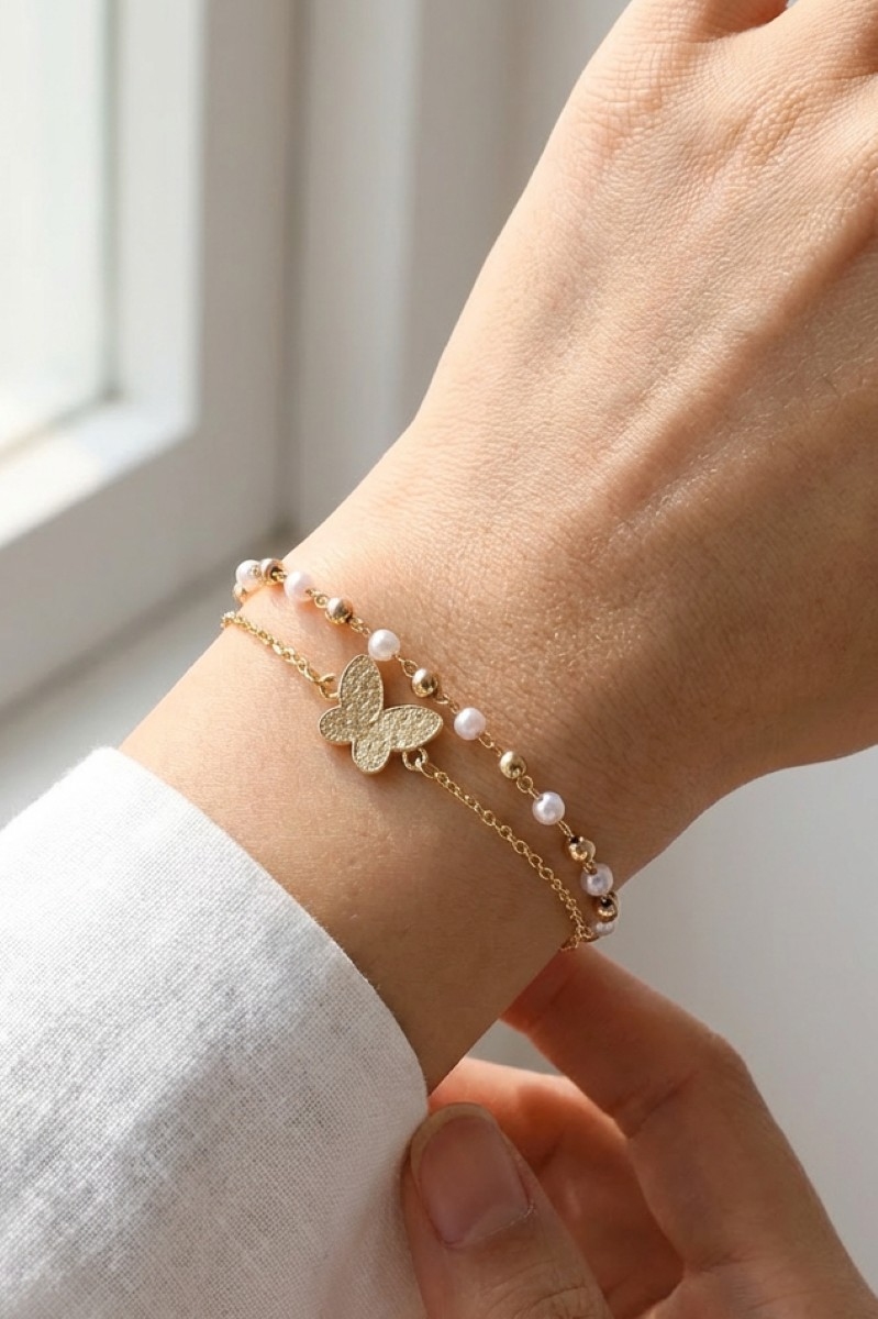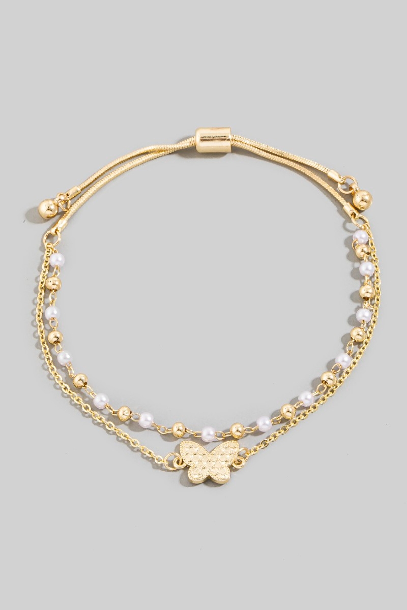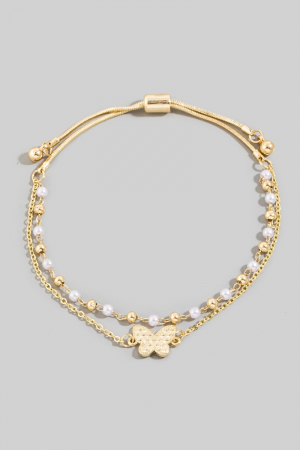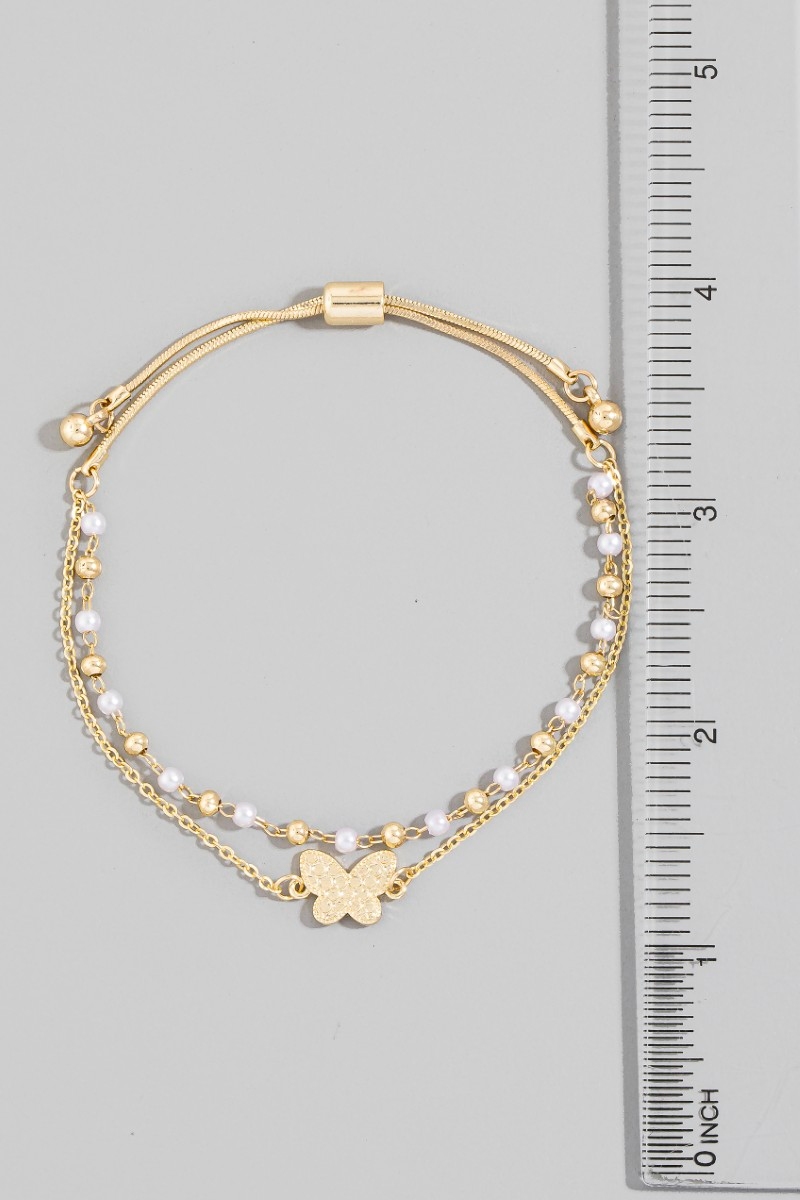 • This bracelet showcases a timeless butterfly pendant mixed layered chains style. Redefine your look effortlessly with this standout, on-trend piece.