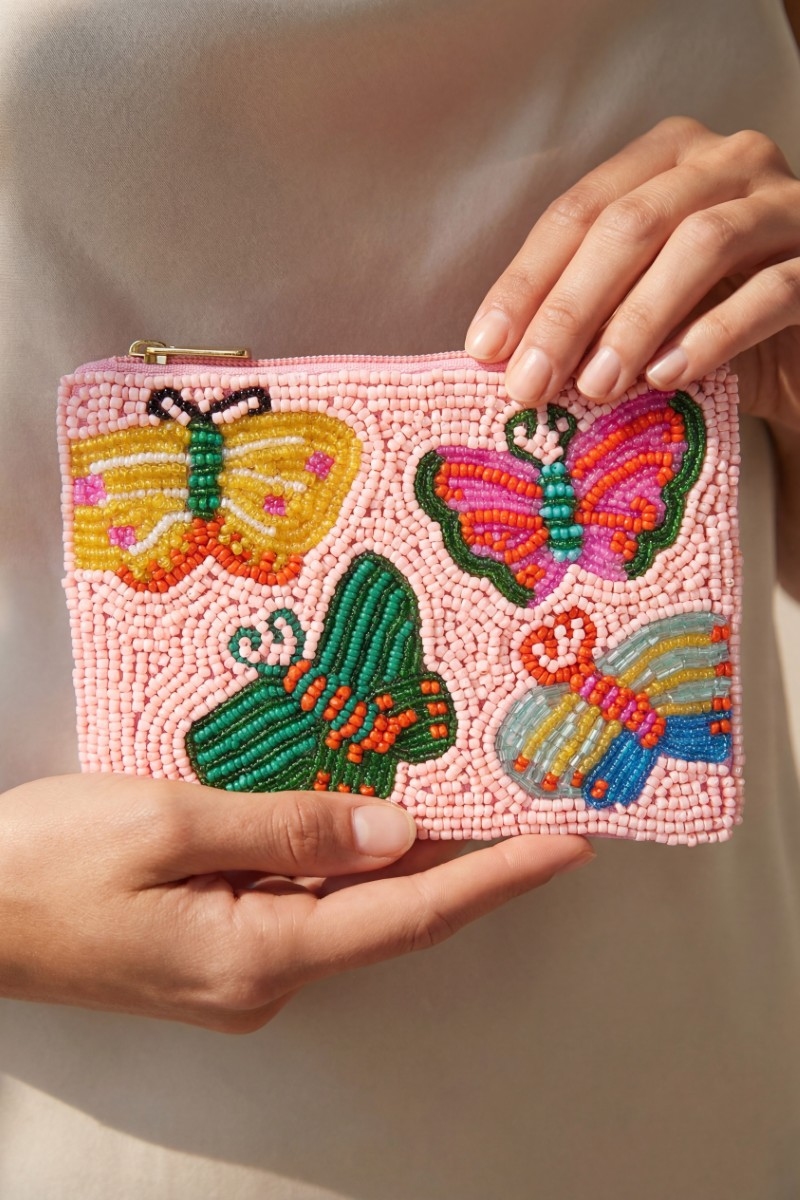 • This coin purse brings a luxurious colorful butterfly beaded style. Savor the craftsmanship that goes beyond the ordinary, as this coin purse effortlessly captivates attention.