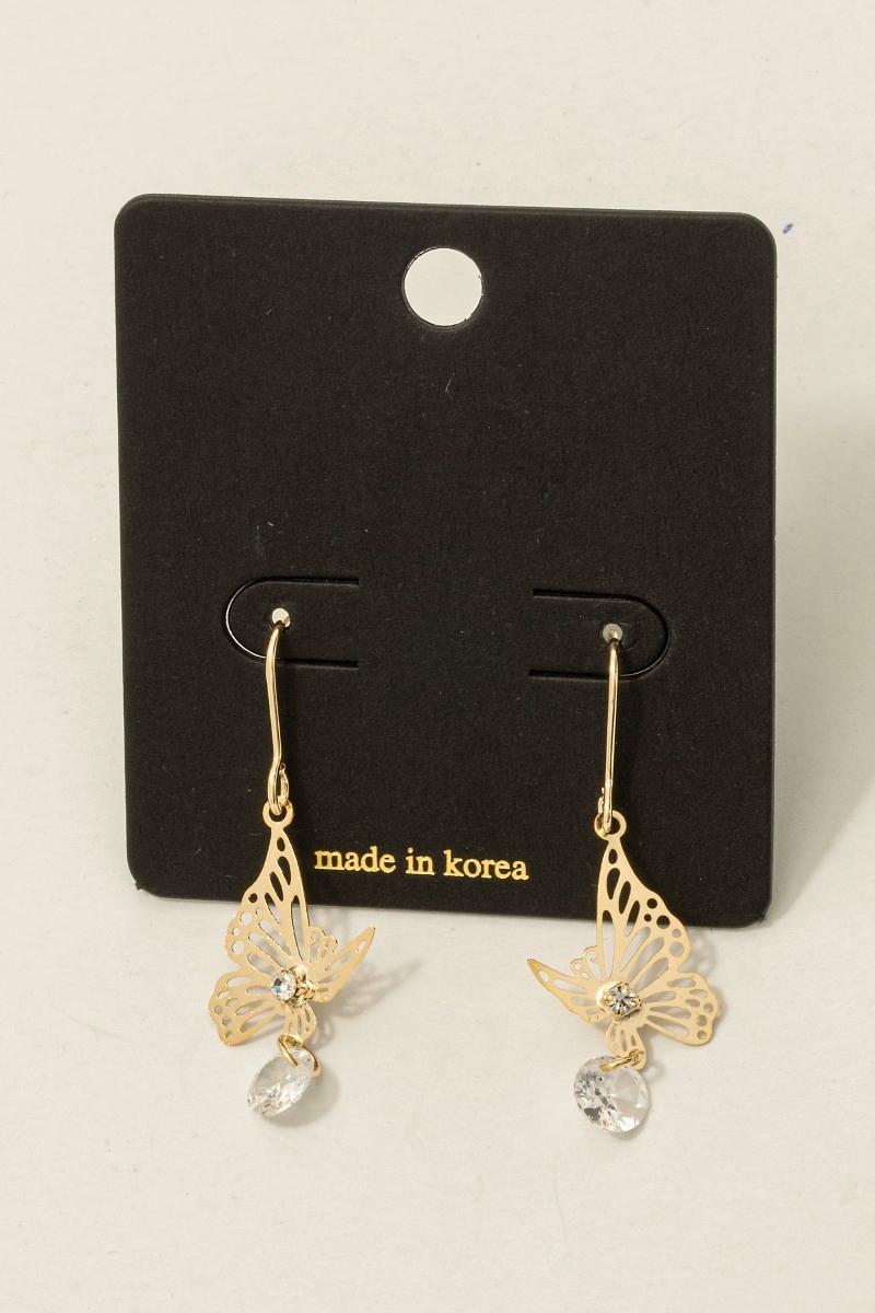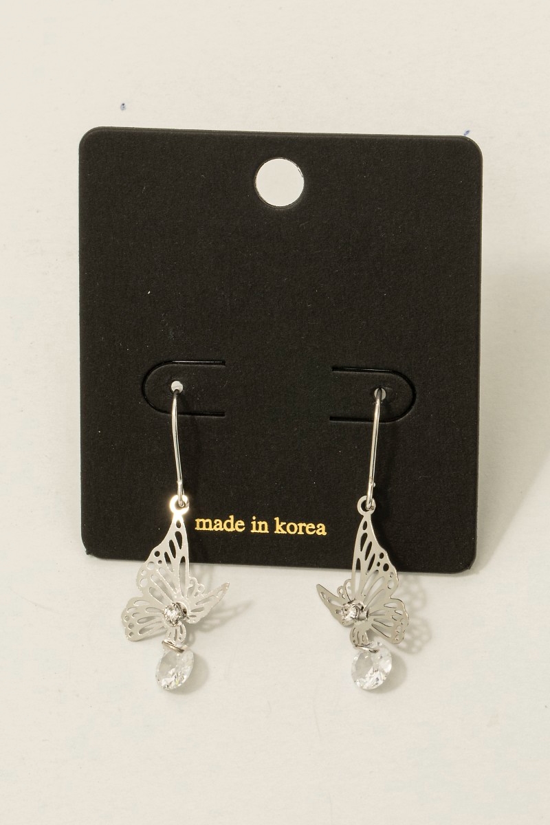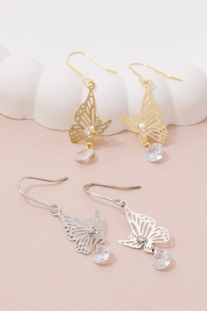- This pair of drop earrings brings a stunning cz butterfly dangle style. Savor the craftsmanship that goes beyond the ordinary, as this pair of drop earrings effortlessly captivates attention.