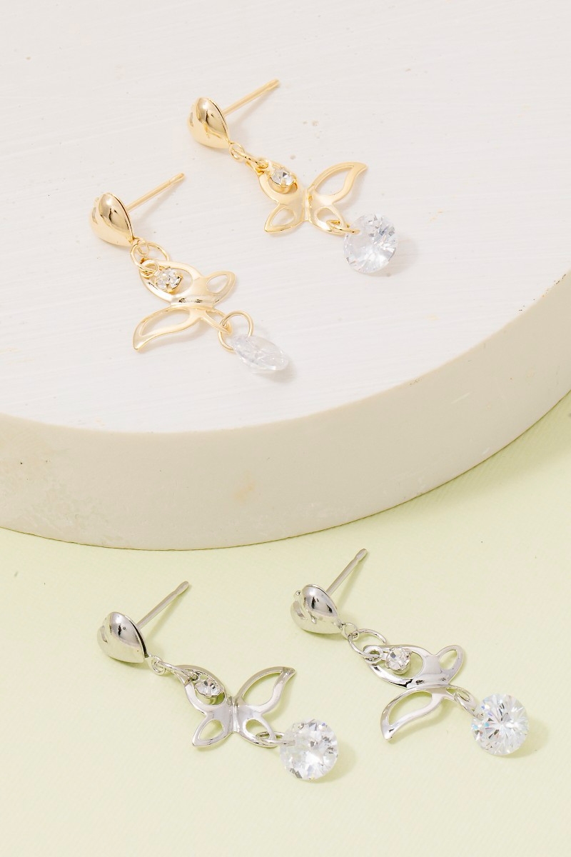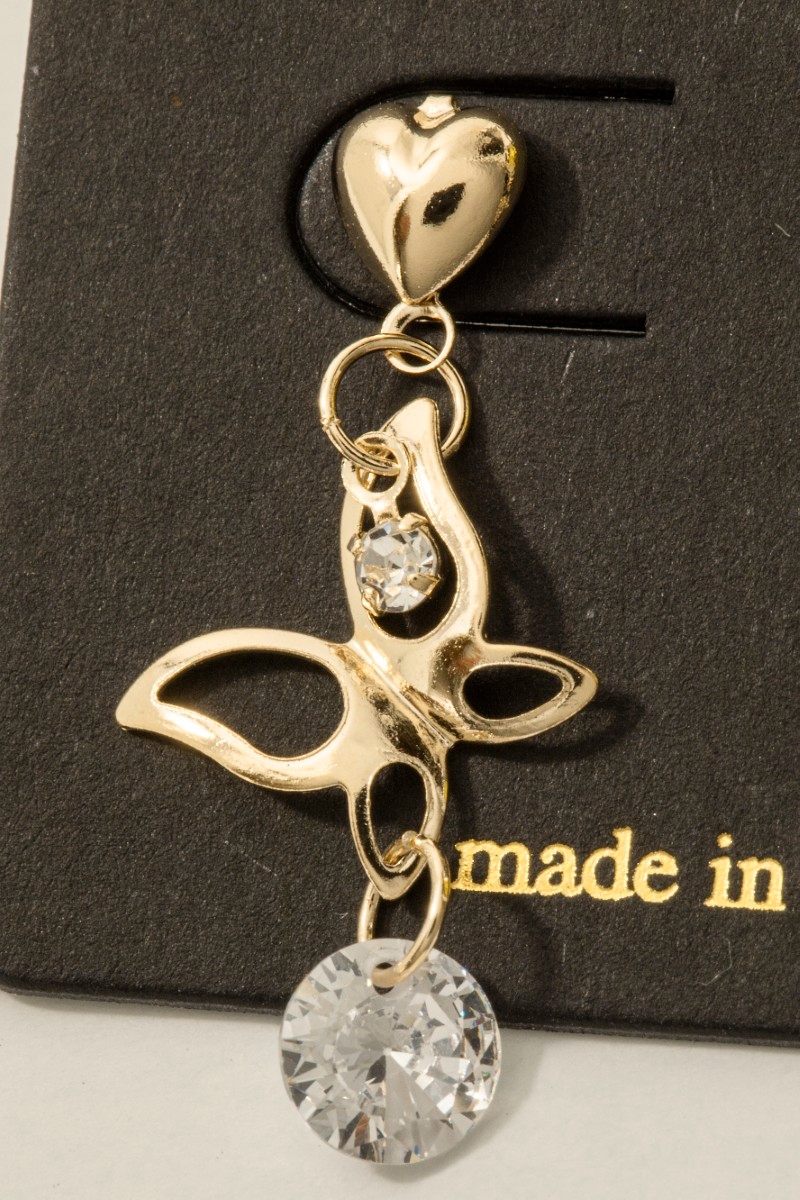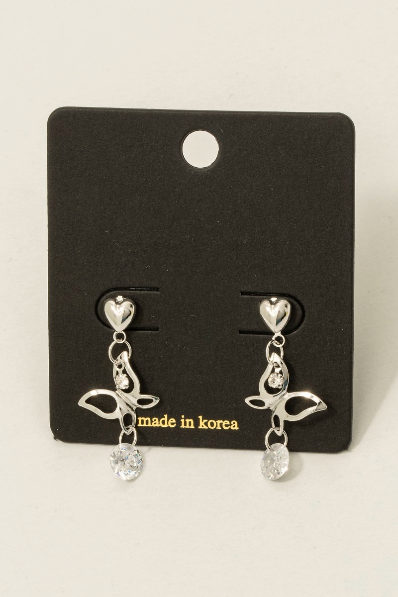- This pair of drop earrings brings a unique cz heart butterfly dangle style. Experience the joy of accessorizing with this piece that effortlessly combines versatility and charm.