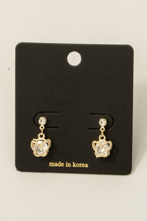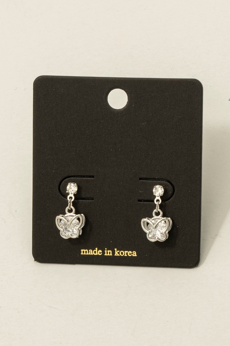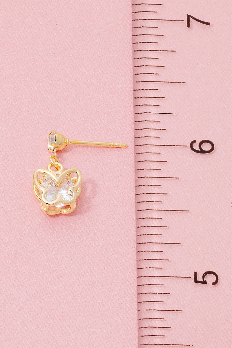 • This pair of drop earrings introduces a unique cz mini butterfly style. Experience the joy of accessorizing with this piece that effortlessly combines versatility and charm.