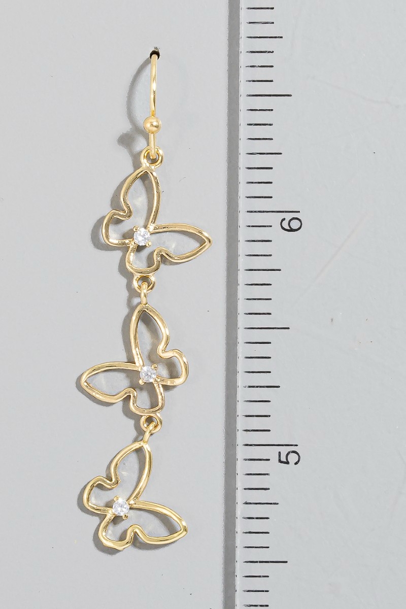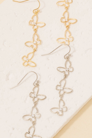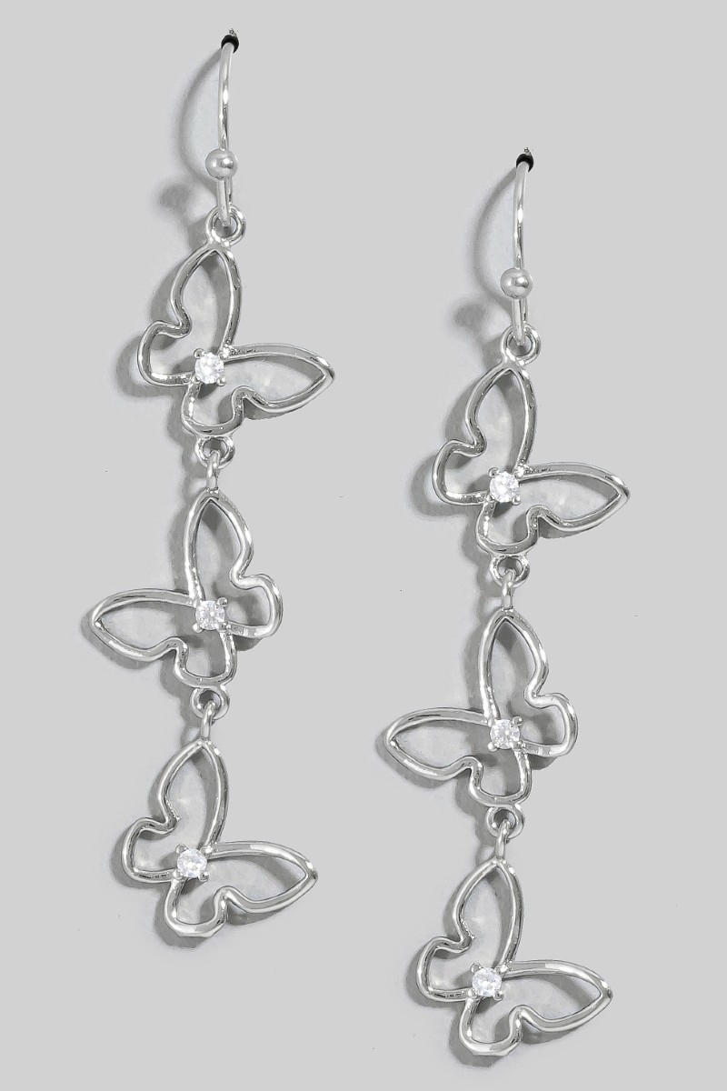 - This pair of dangle earrings showcases a unique cz studded butterfly chain style. Immerse yourself in the details of design, as this pair of dangle earrings effortlessly becomes a conversation starter.