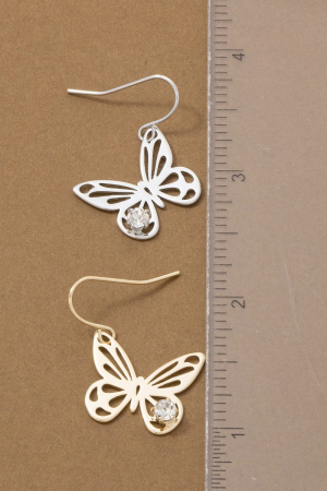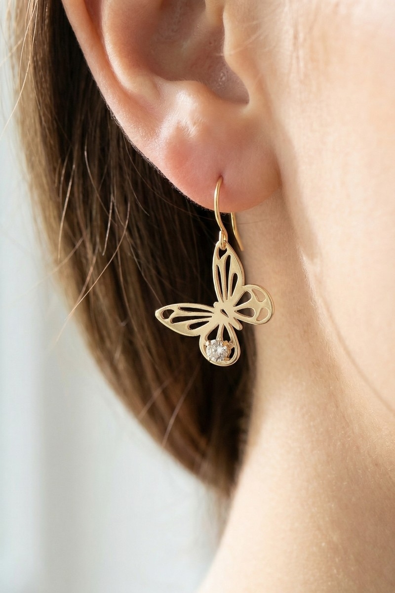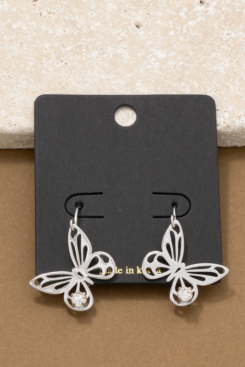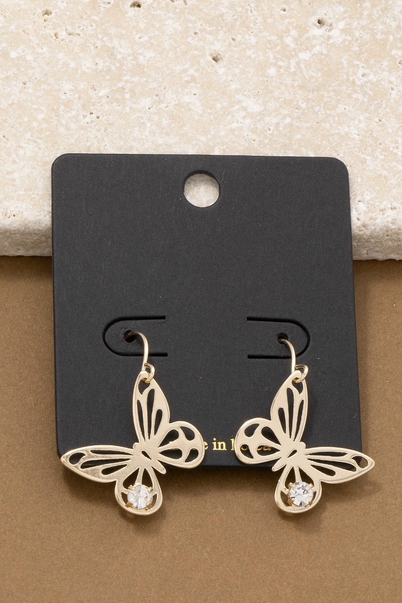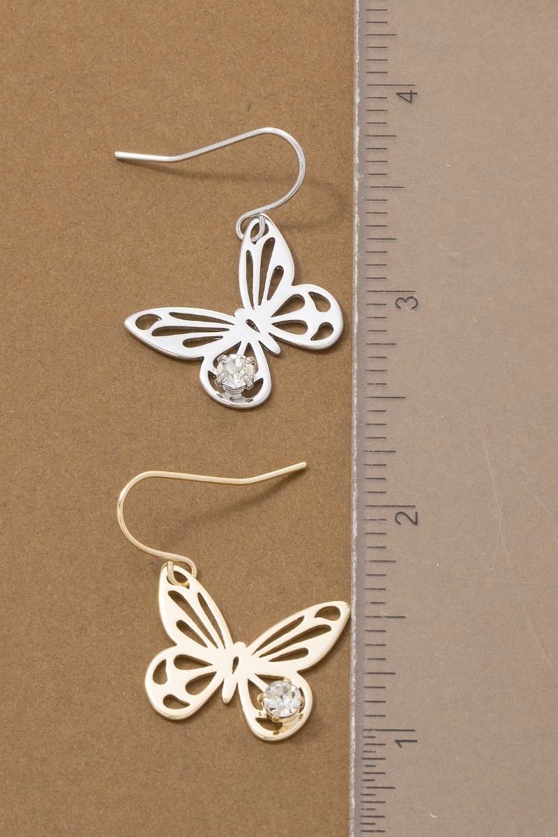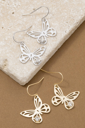 - This pair of dangle earrings introduces a unique faceted gem and butterfly style. Elevate your ensemble with this chic, timeless pair of dangle earrings.