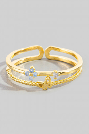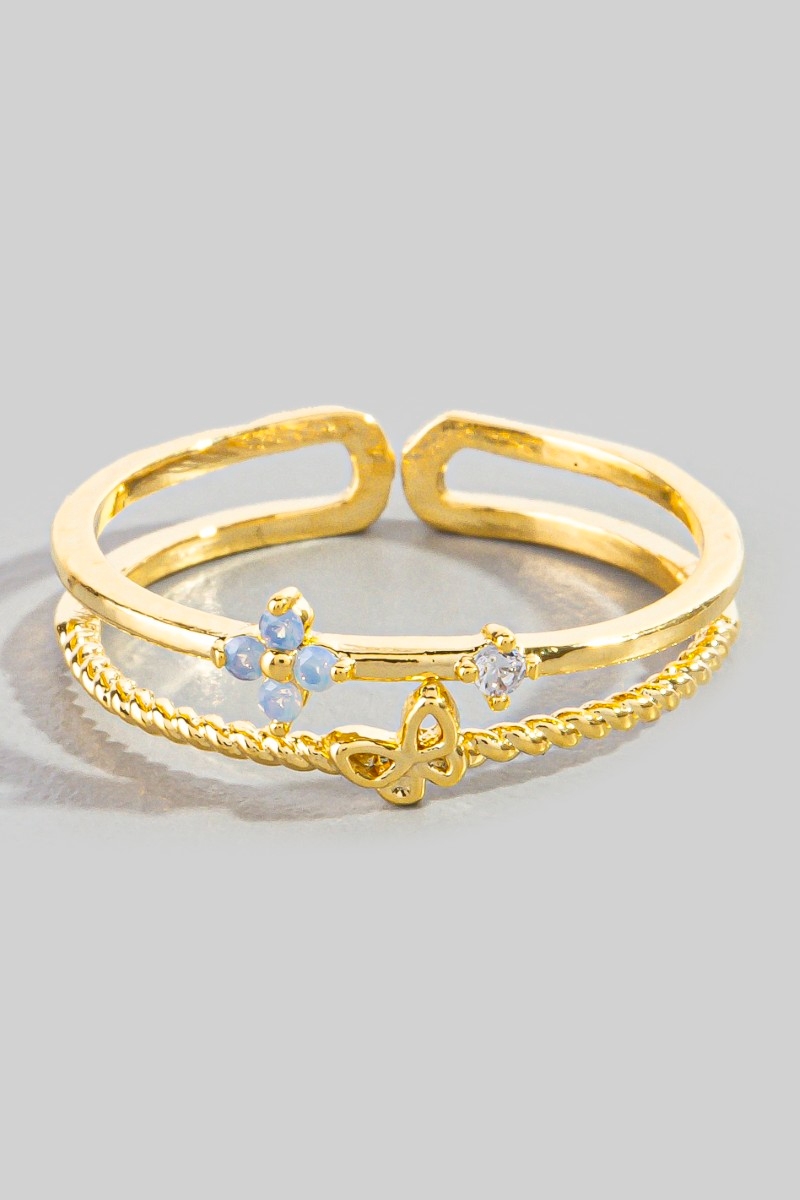 - This ring brings a unique gold dipped cubic zirconia opal cluster & butterfly double band style. Explore a refined sense of style with this ring, seamlessly elevating the chic factor of your look.