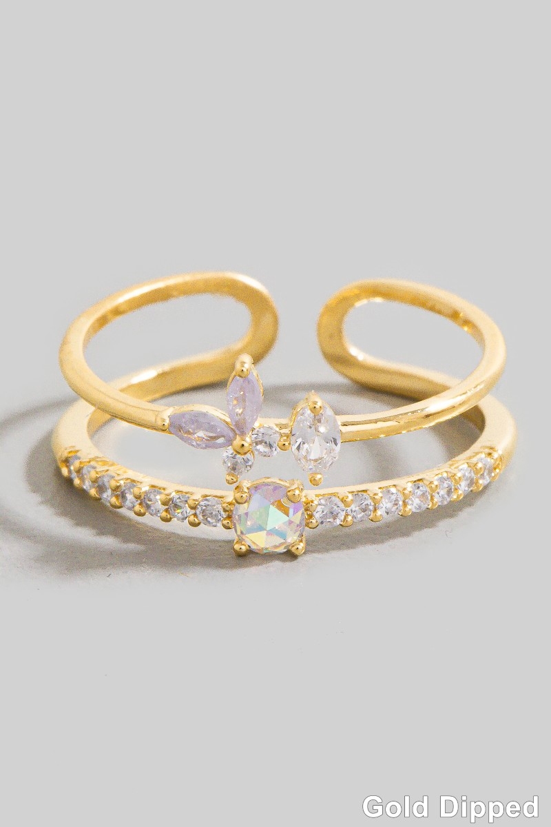 Gold Dipped Cz & Butterfly Double Row Ring