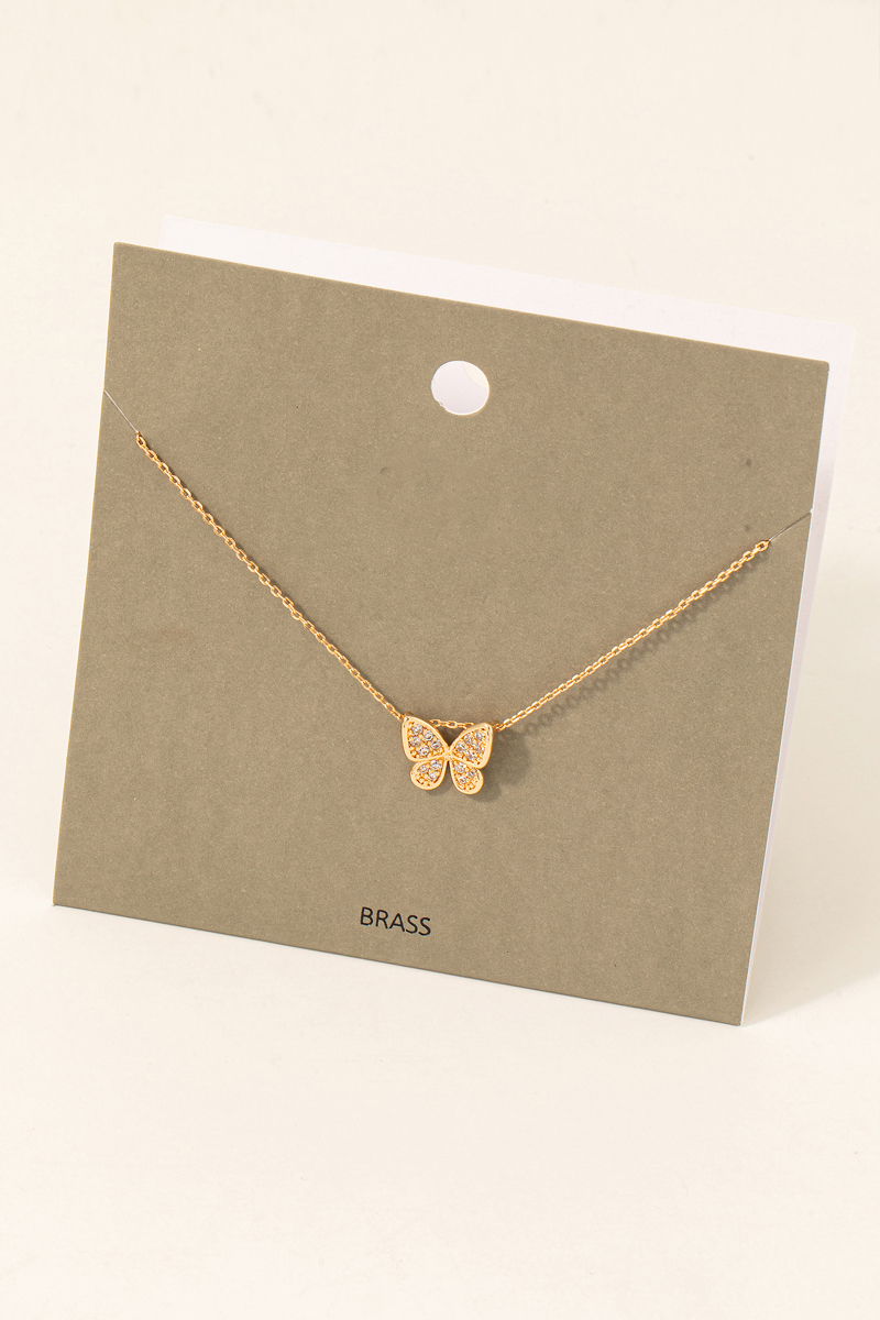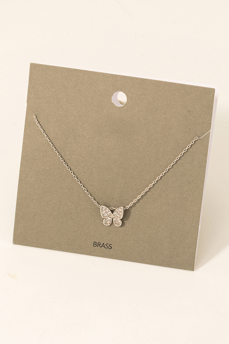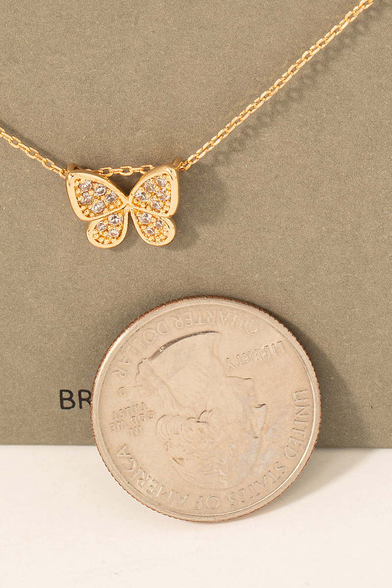 • This necklace showcases a timeless cubic zirconia pave butterfly pendant style. Savor the allure of detailed craftsmanship in this exquisite accessory.