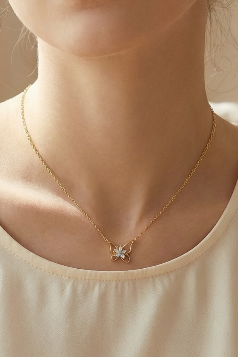 • This pendant necklace brings a unique floral cubic zirconia butterfly style. Delight in the intricate details that make this pendant necklace an essential element in expressing your fashion identity.