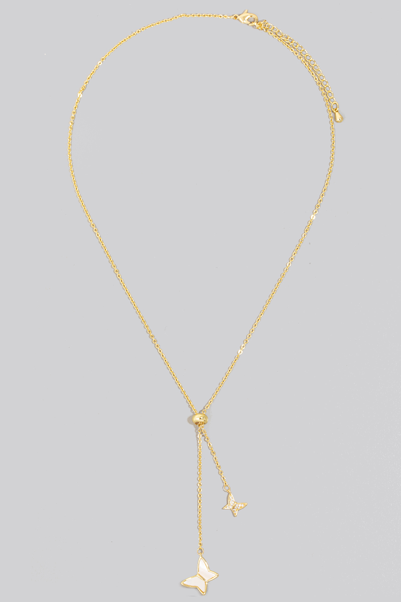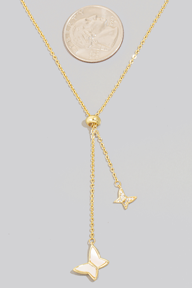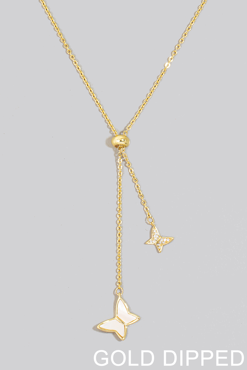 - This chain necklace displays a fashionable gold dipped cz and shell butterfly charms style. Celebrate individual style with this versatile, eye-catching addition.