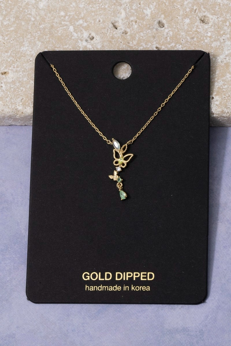 Gold Dipped Pave Butterfly Pendant Necklace