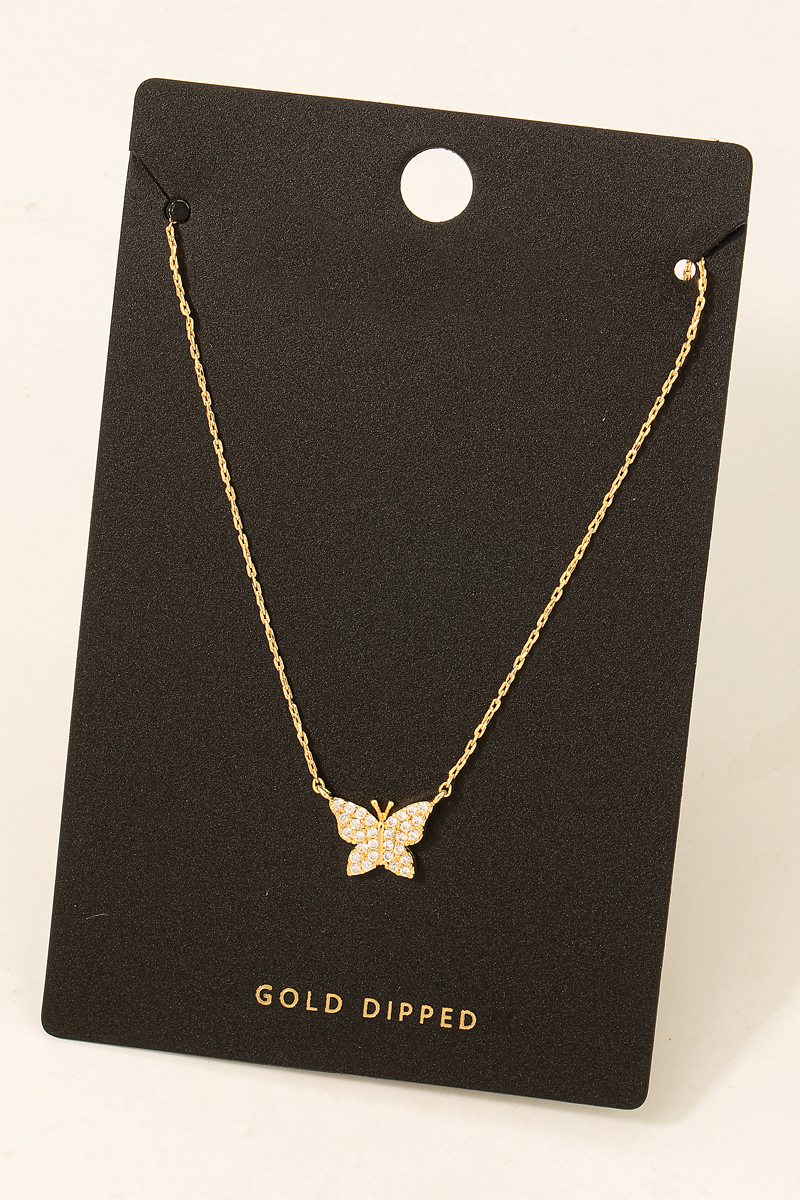- This necklace displays a vibrant gold dipped pave butterfly pendant style. Redefine your look effortlessly with this standout, on-trend piece.