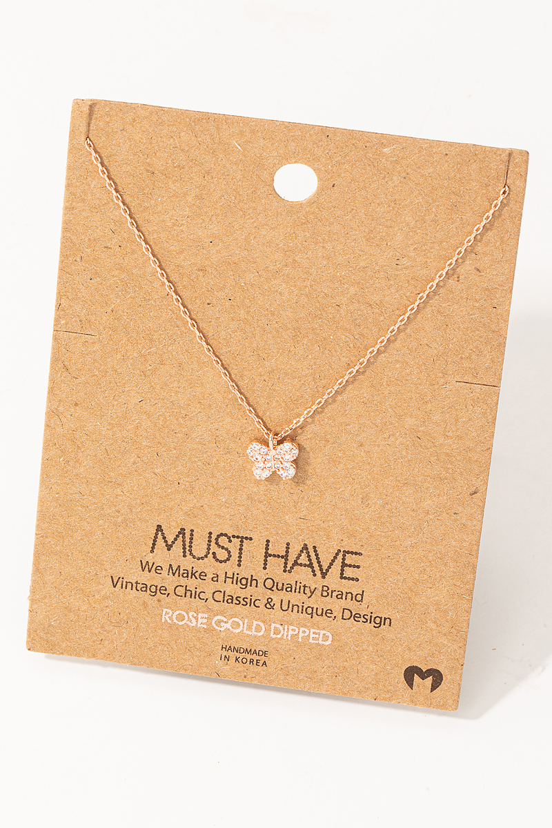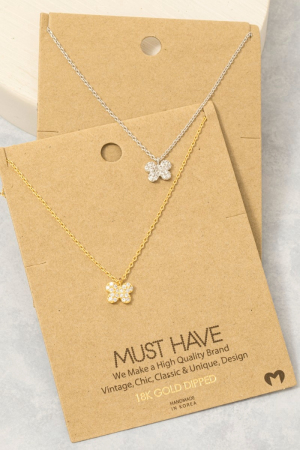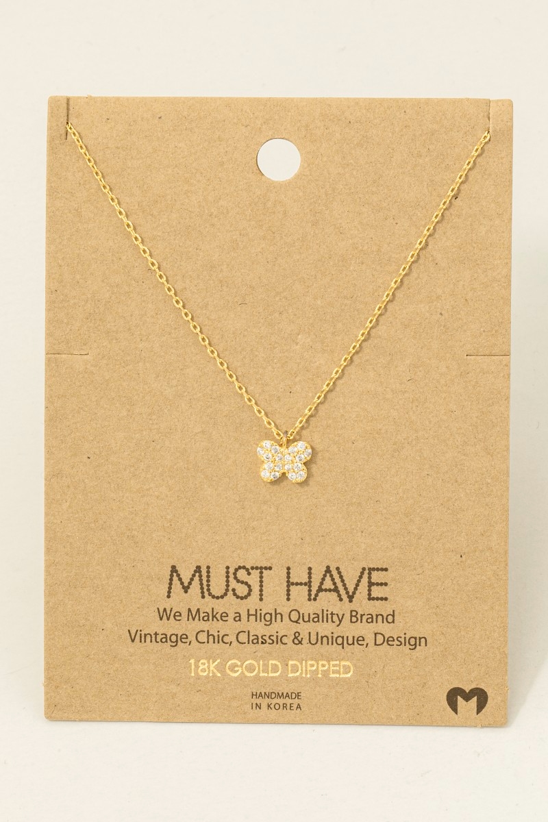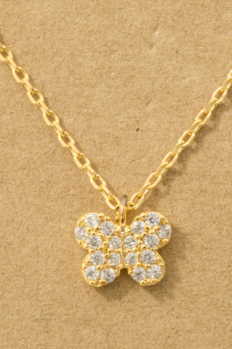 - This trending necklace displays a fashionable gold dipped pave mini butterfly charm necklace style. Immerse yourself in the details of design, as this trending necklace effortlessly becomes a conversation starter.