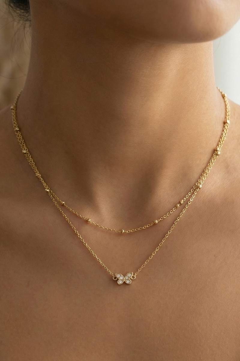 - This pendant necklace introduces a stunning layered chain cubic zirconia butterfly style. Celebrate individual style with this versatile, eye-catching addition.