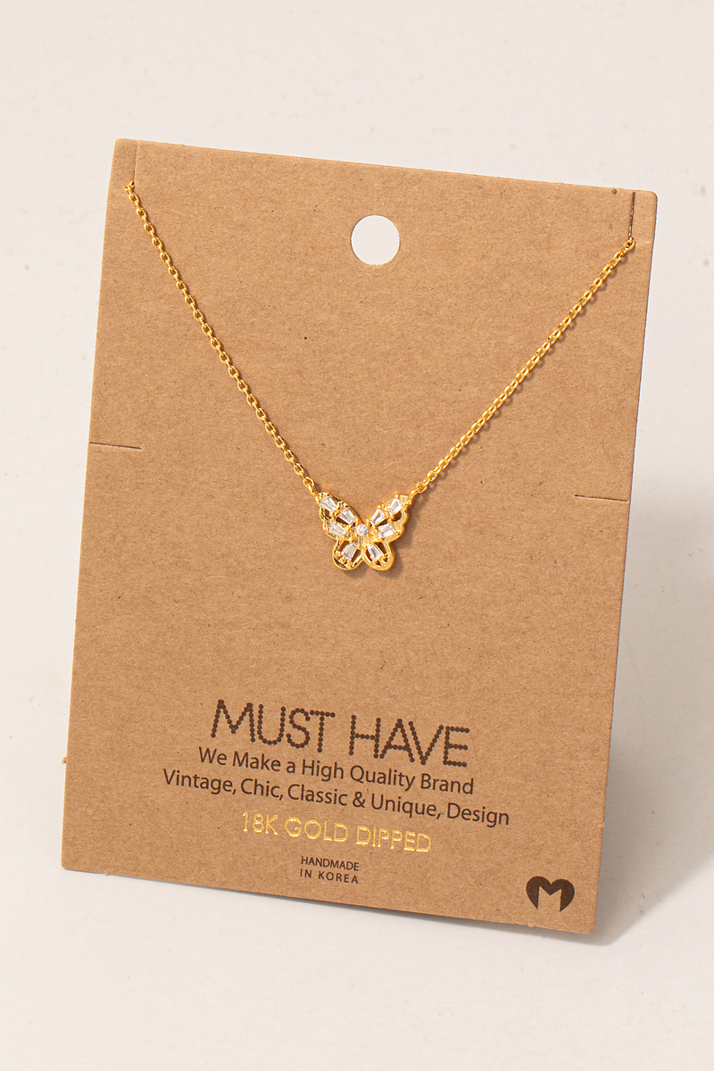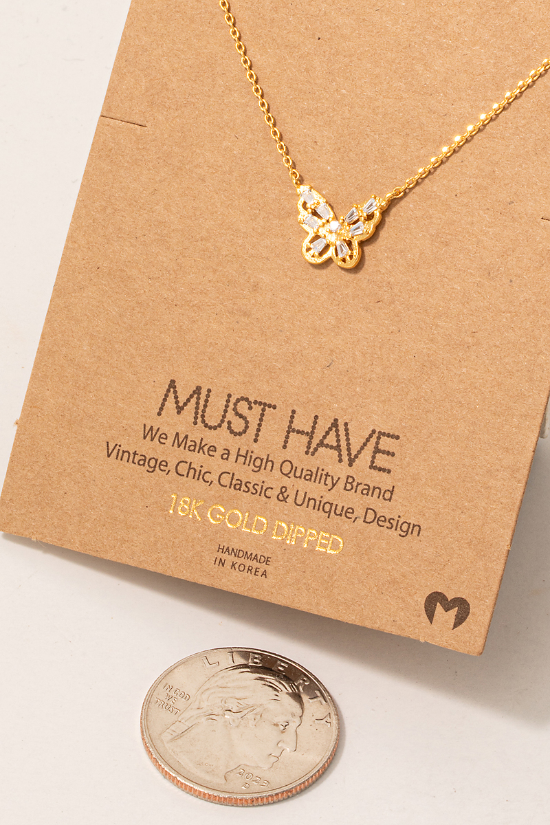 Gold Dipped Pave Butterfly Pendant Necklace