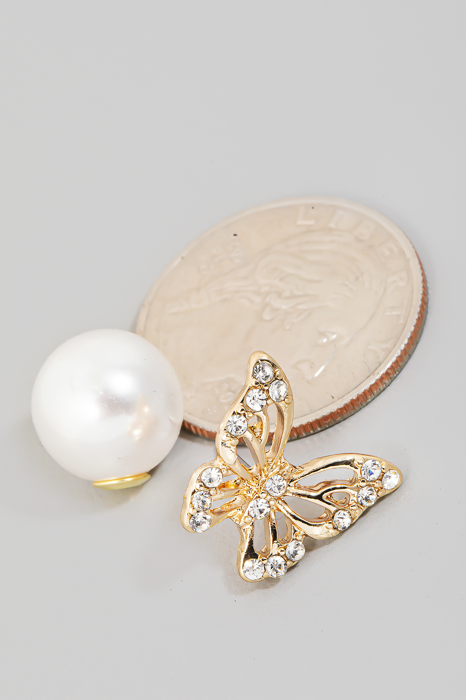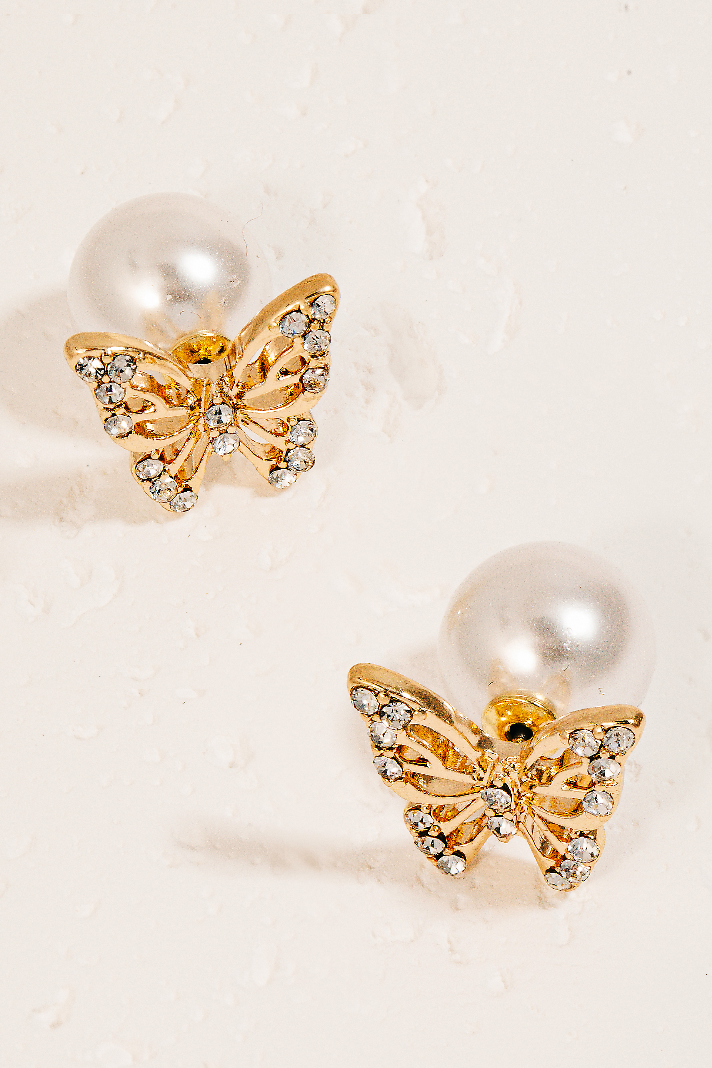 • This pair of stud earrings brings a unique pave butterfly pearl style. Celebrate individuality with this accessory that effortlessly expresses your unique sense of style.