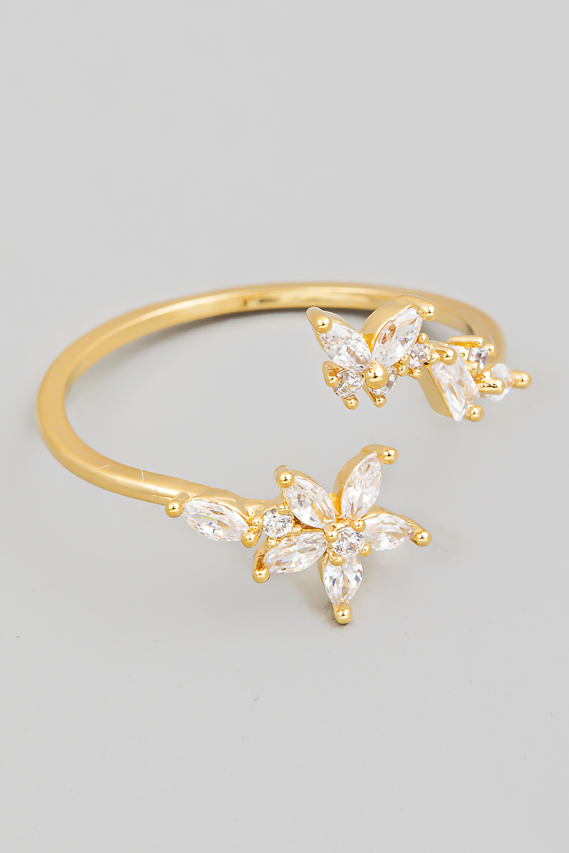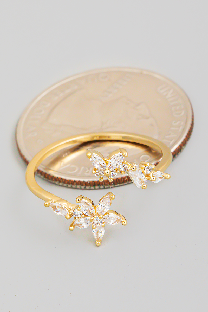 Gold Dipped Cz Cluster & Butterfly Double Band Ring