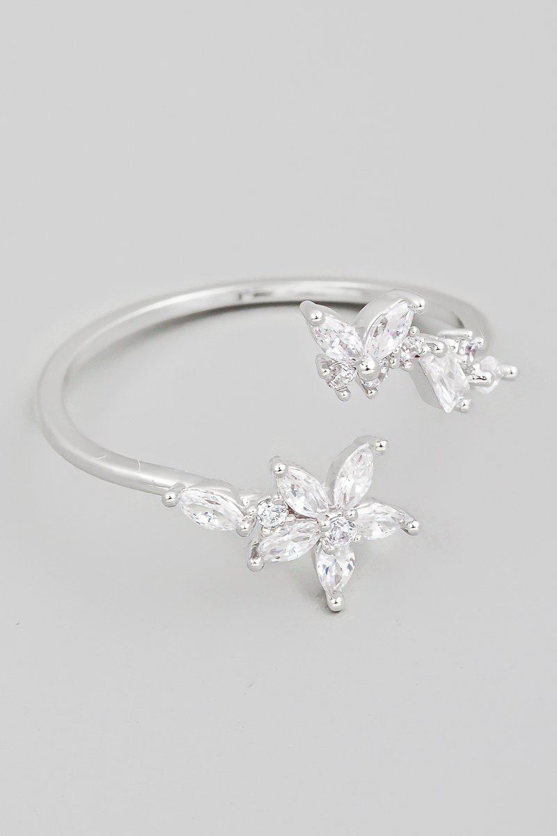 Gold Dipped Cz Butterfly And Heart Open Ring