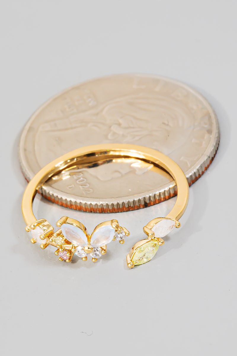- This ring displays a fashionable cubic zirconia butterfly open band style. Celebrate individual style with this versatile, eye-catching addition.