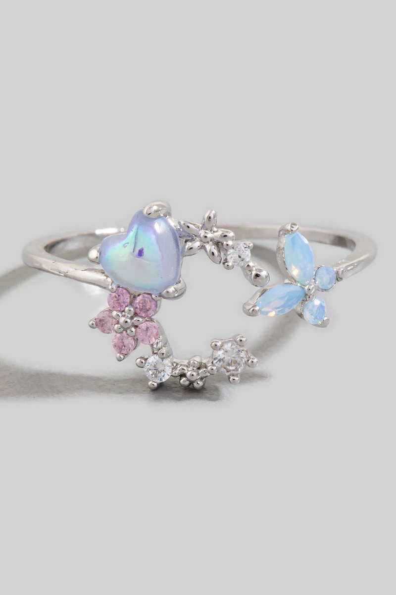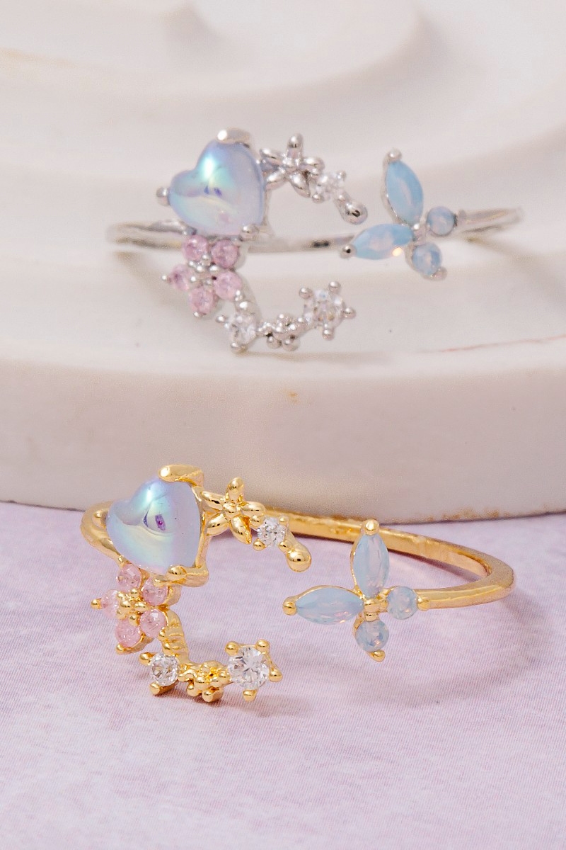 - This ring introduces a unique cz butterfly and moon open band style. Immerse yourself in fashion finesse with this statement ring.