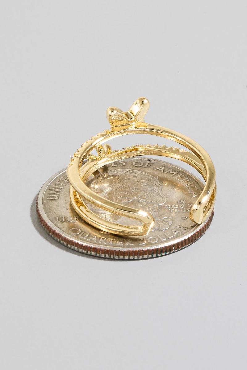 Gold Dipped Cz Cluster & Butterfly Double Band Ring