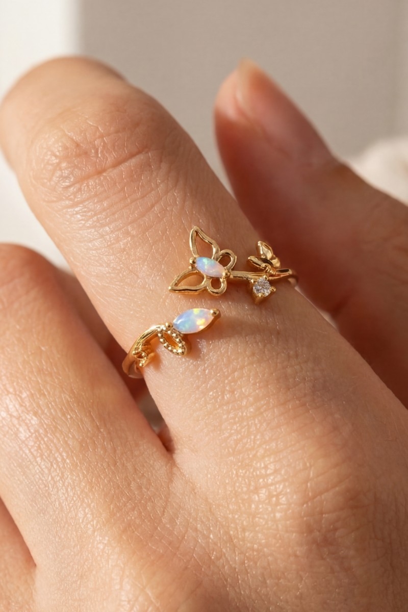 - This ring brings a luxurious gold dipped cubic zirconia butterfly leaf style. Celebrate the art of accessorizing with this piece that effortlessly encapsulates modern trends.