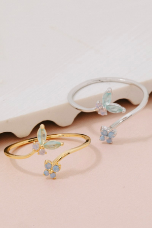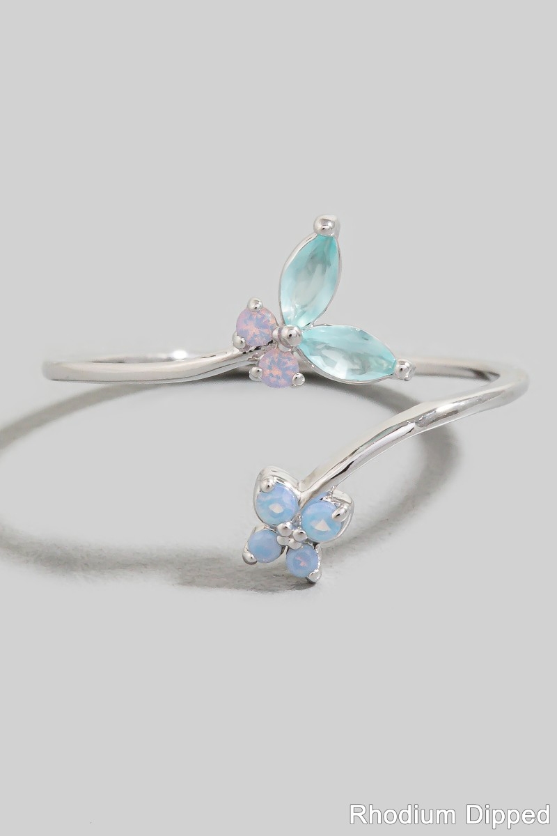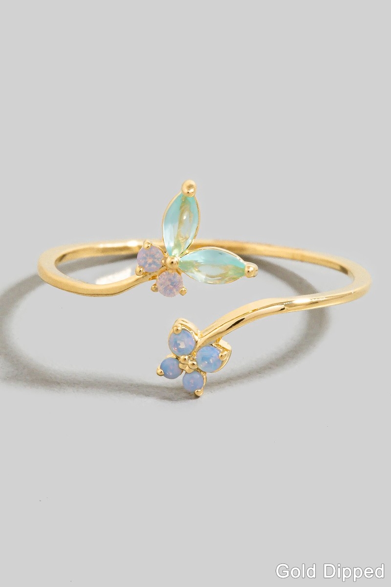 Gold Dipped Cz Opal Cluster & Butterfly Double Band Ring
