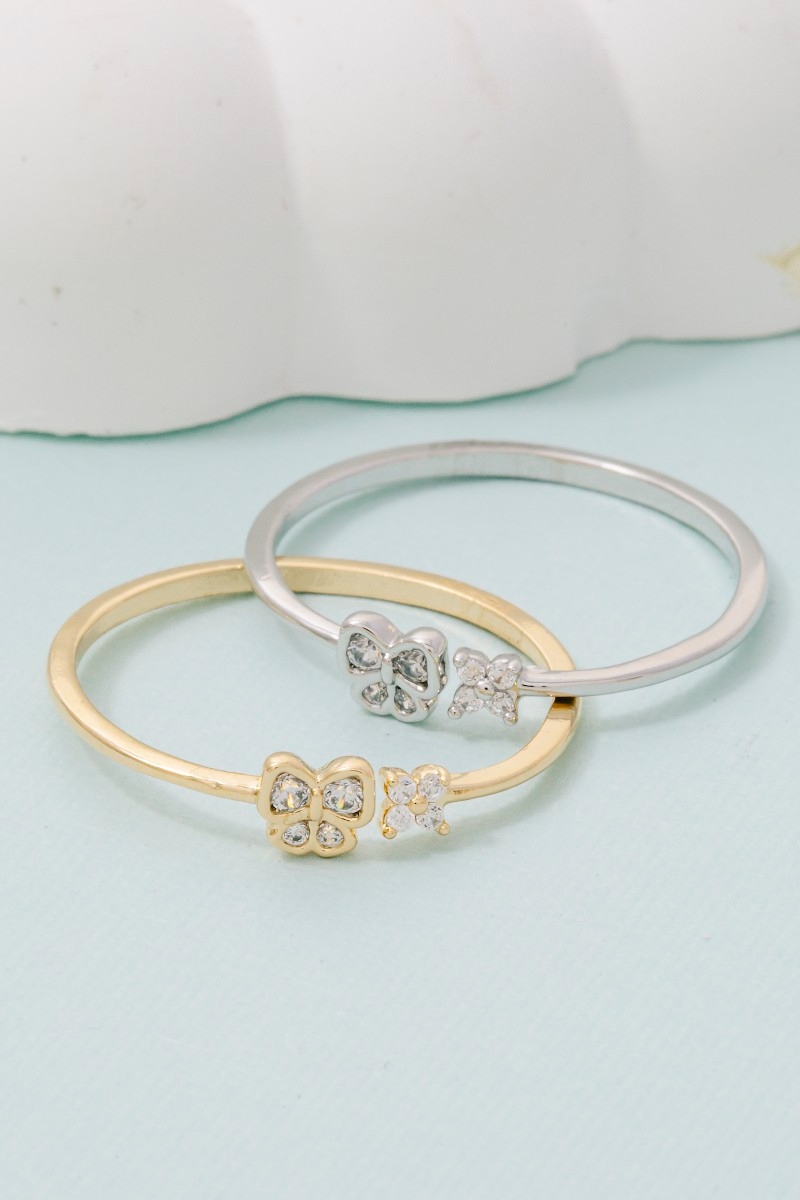 - This ring features a fashionable gold dipped pave butterfly flower style. Discover the perfect balance of subtlety and flair as this ring effortlessly completes your look.