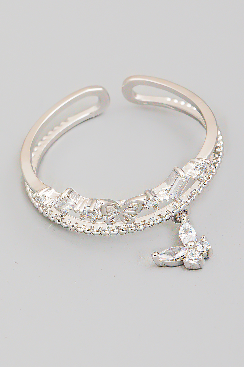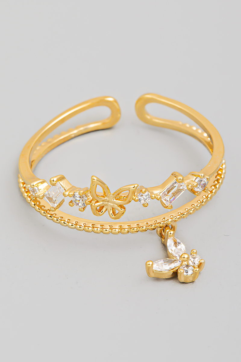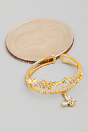 Gold Dipped Cz Cluster & Butterfly Double Band Ring