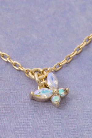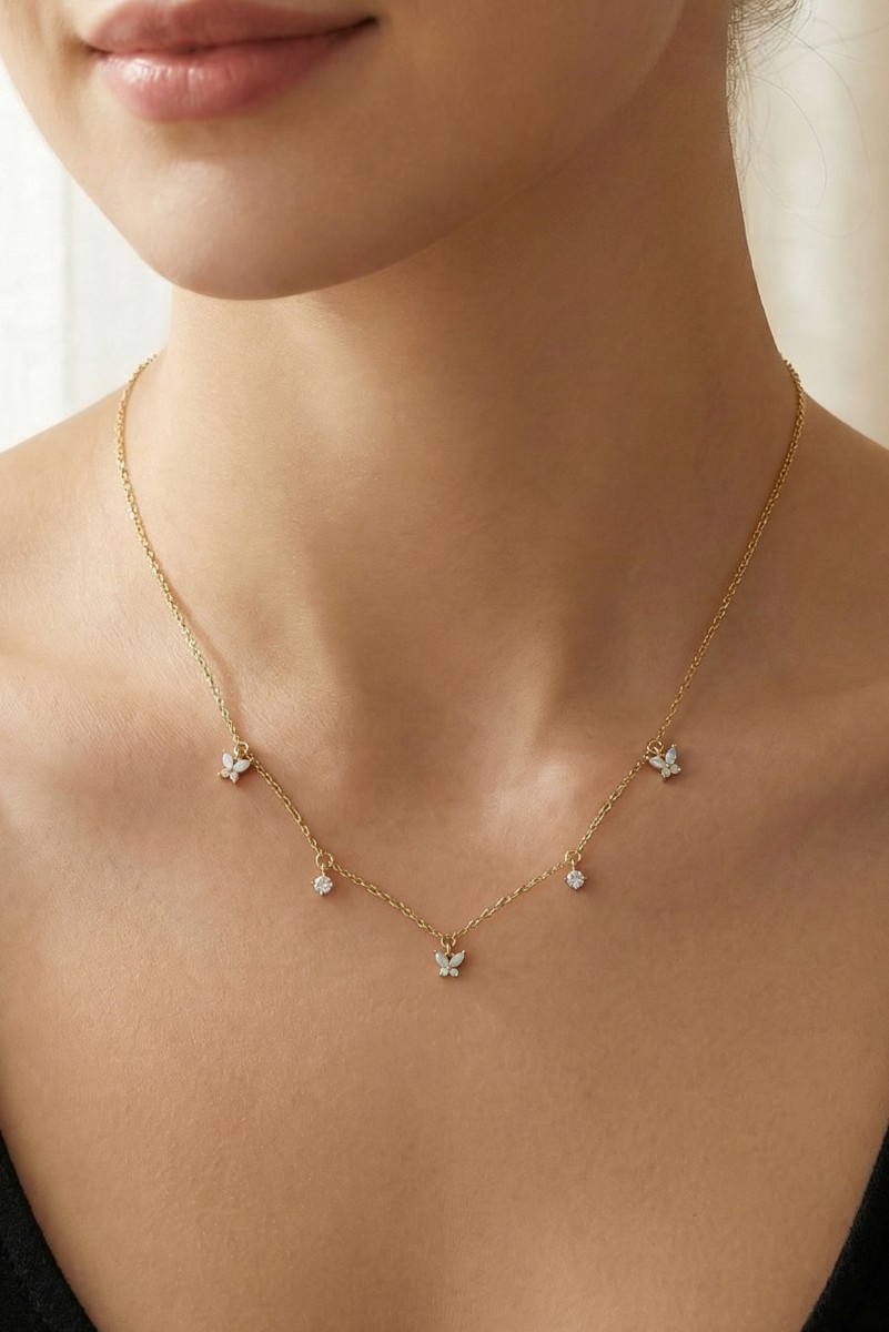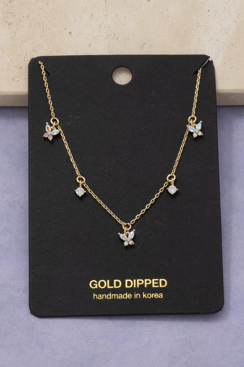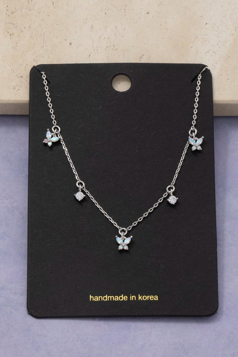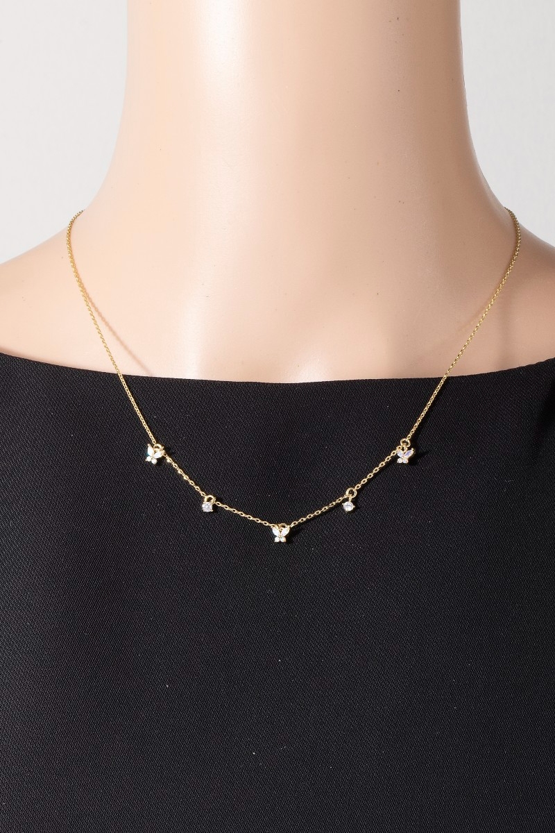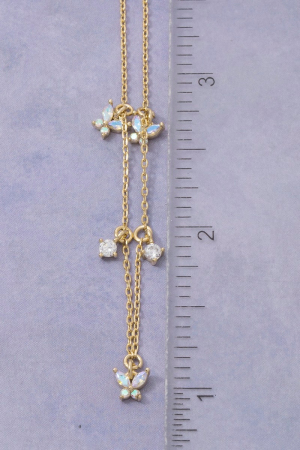 - This necklace displays a vibrant triple cubic zirconia butterfly charms style. Savor the craftsmanship that goes beyond the ordinary, as this necklace effortlessly captivates attention.