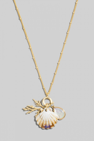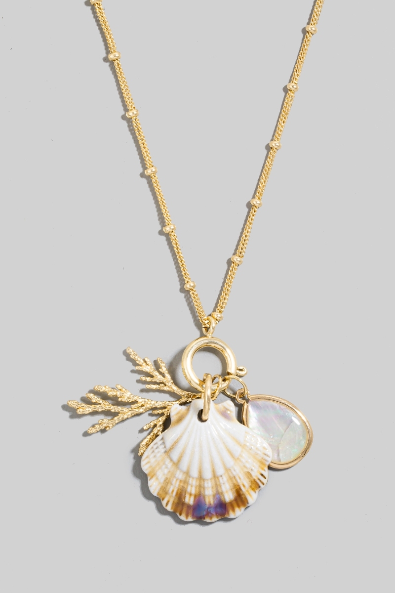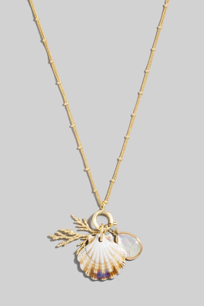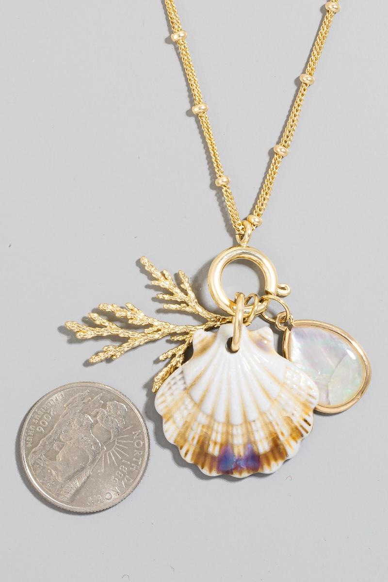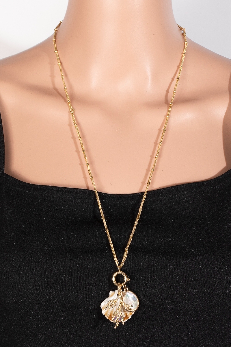 • This long necklace displays a vibrant metallic sea shell and tear charms long chain necklace style. Embark on a journey of sartorial refinement as this long necklace effortlessly complements your fashion sense.