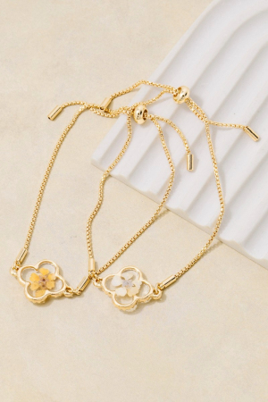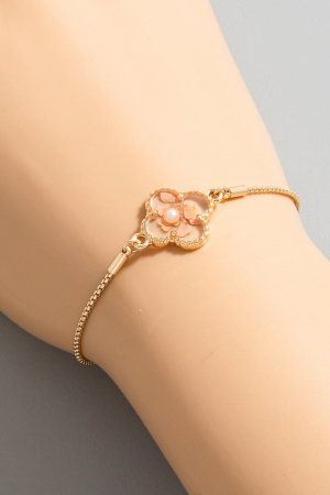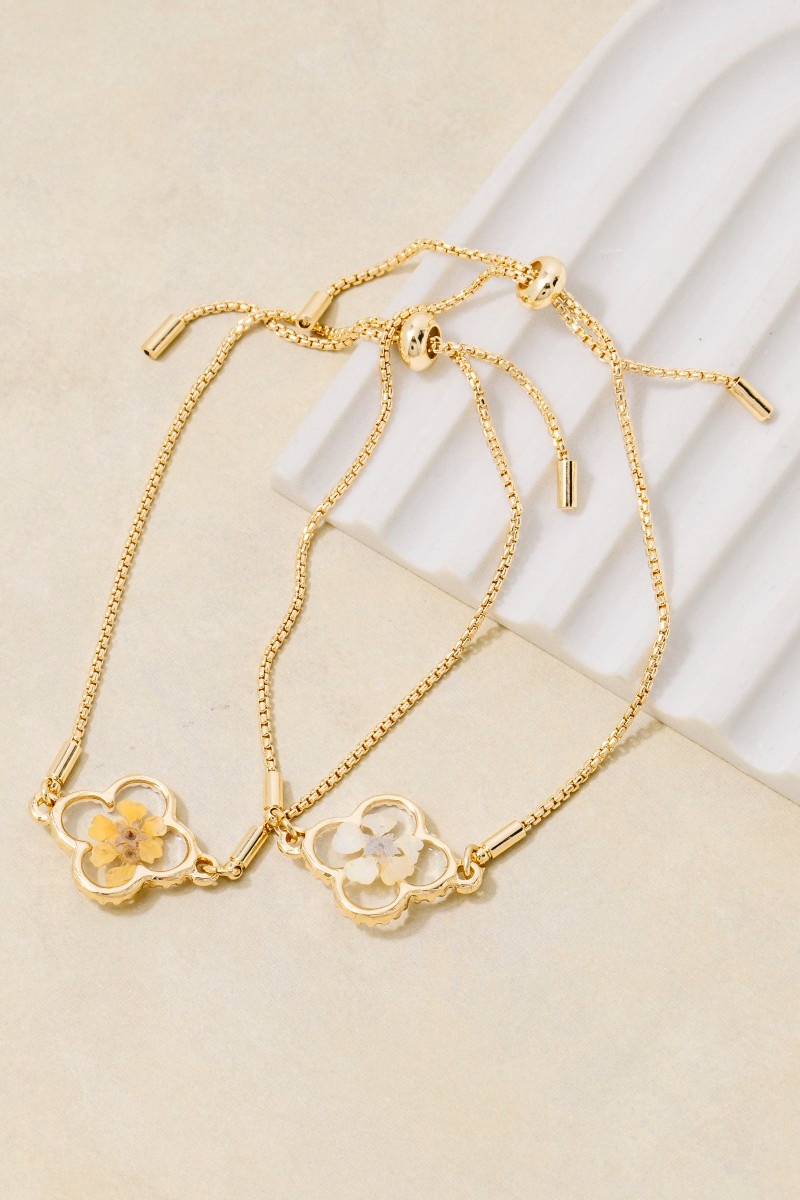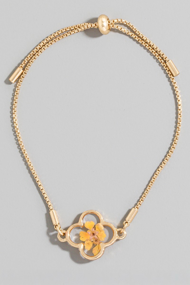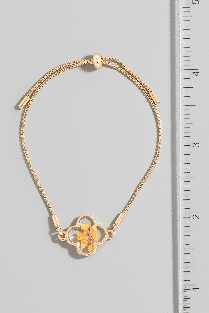 - This bracelet brings a luxurious pressed flower clover charm adjustable style. Delight in the nuanced details that make this bracelet a testament to fine design and impeccable taste.