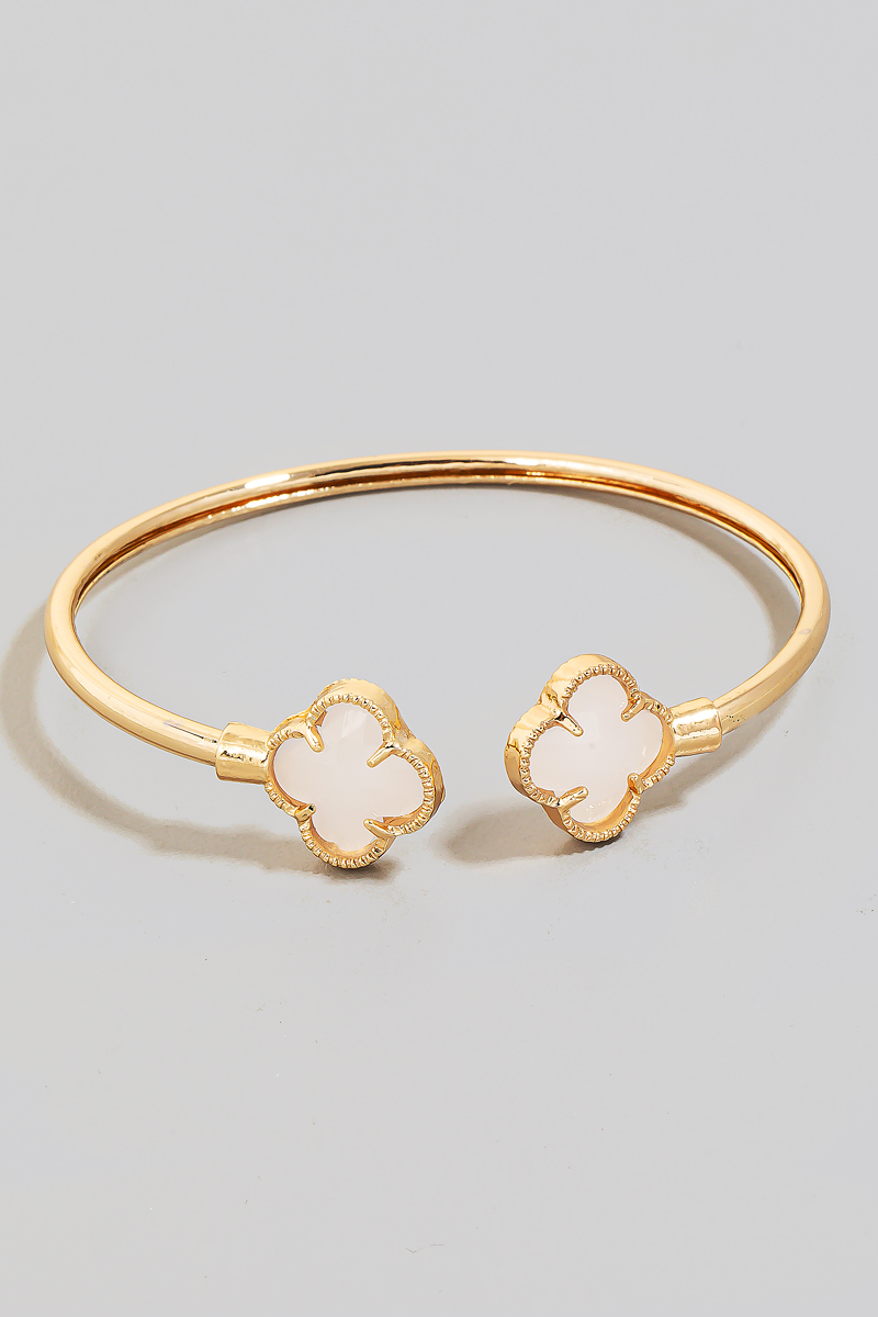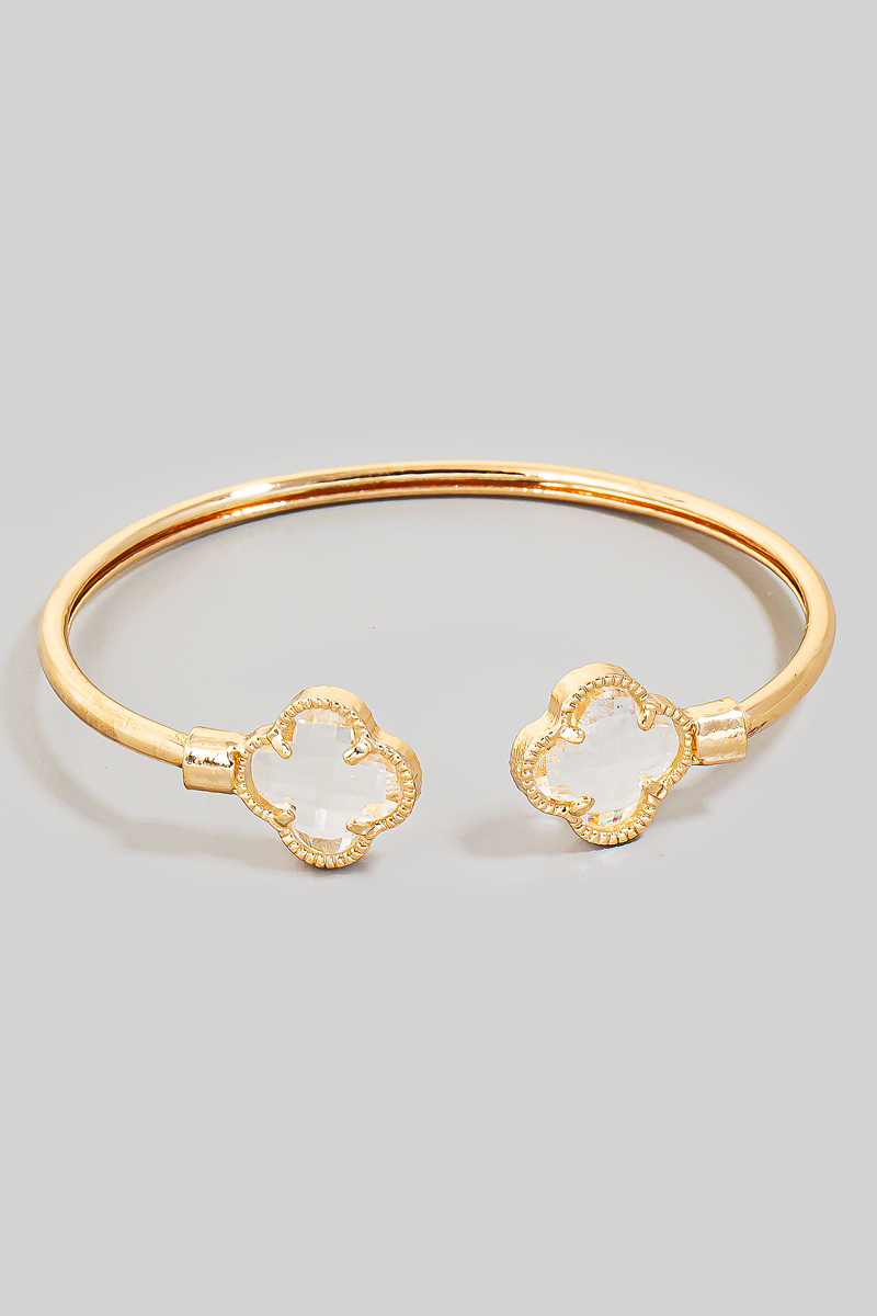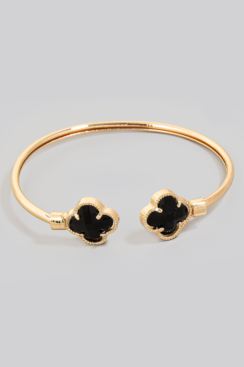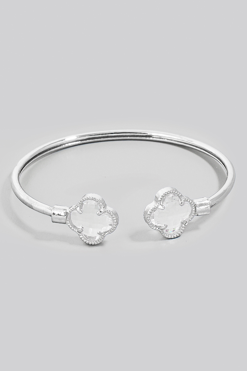 - This cuff bracelet features a fashionable double faceted clover ends style. Redefine your look effortlessly with this standout, on-trend piece.