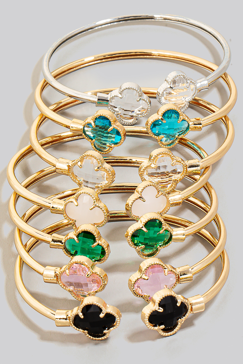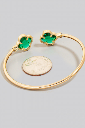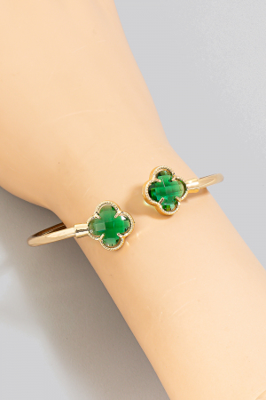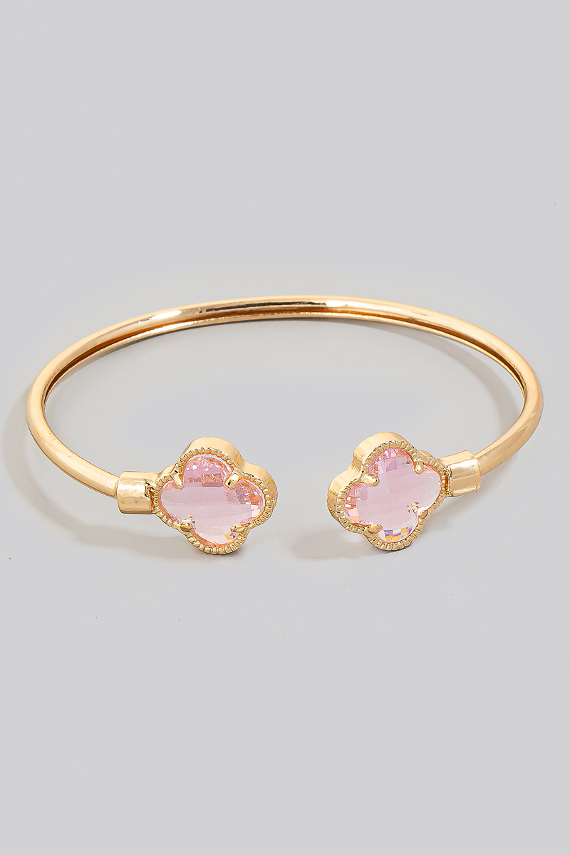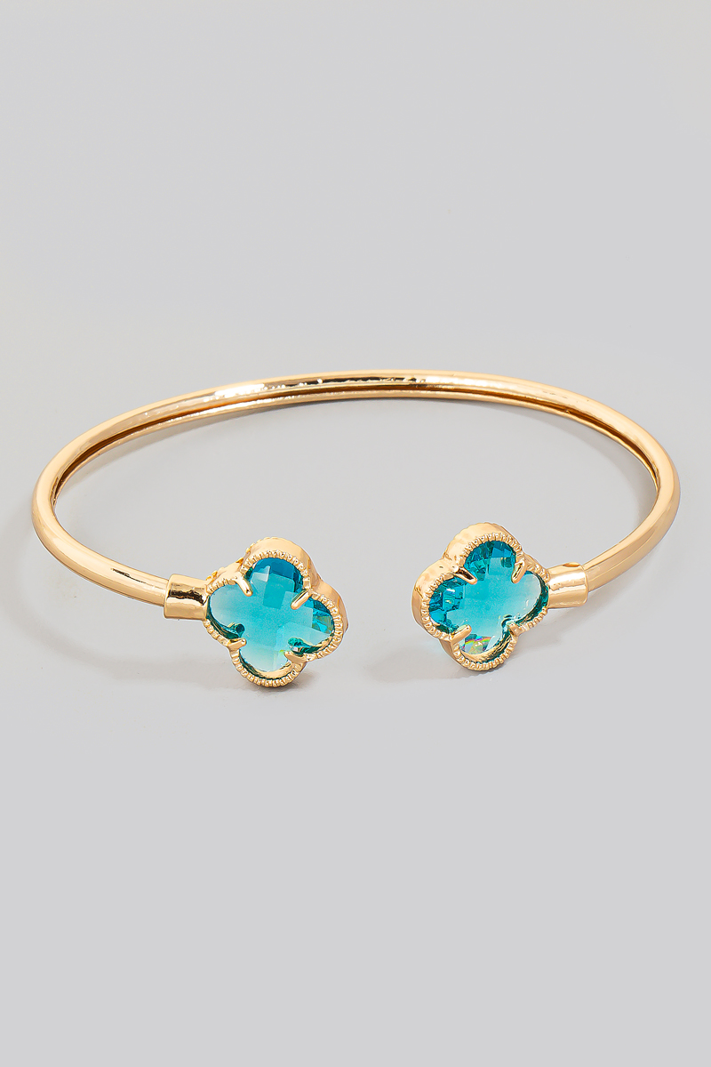 - This cuff bracelet features a fashionable double faceted clover ends style. Redefine your look effortlessly with this standout, on-trend piece.