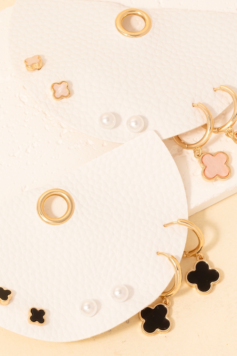 Clover And Pearls Hoop And Stud Earrings Set
