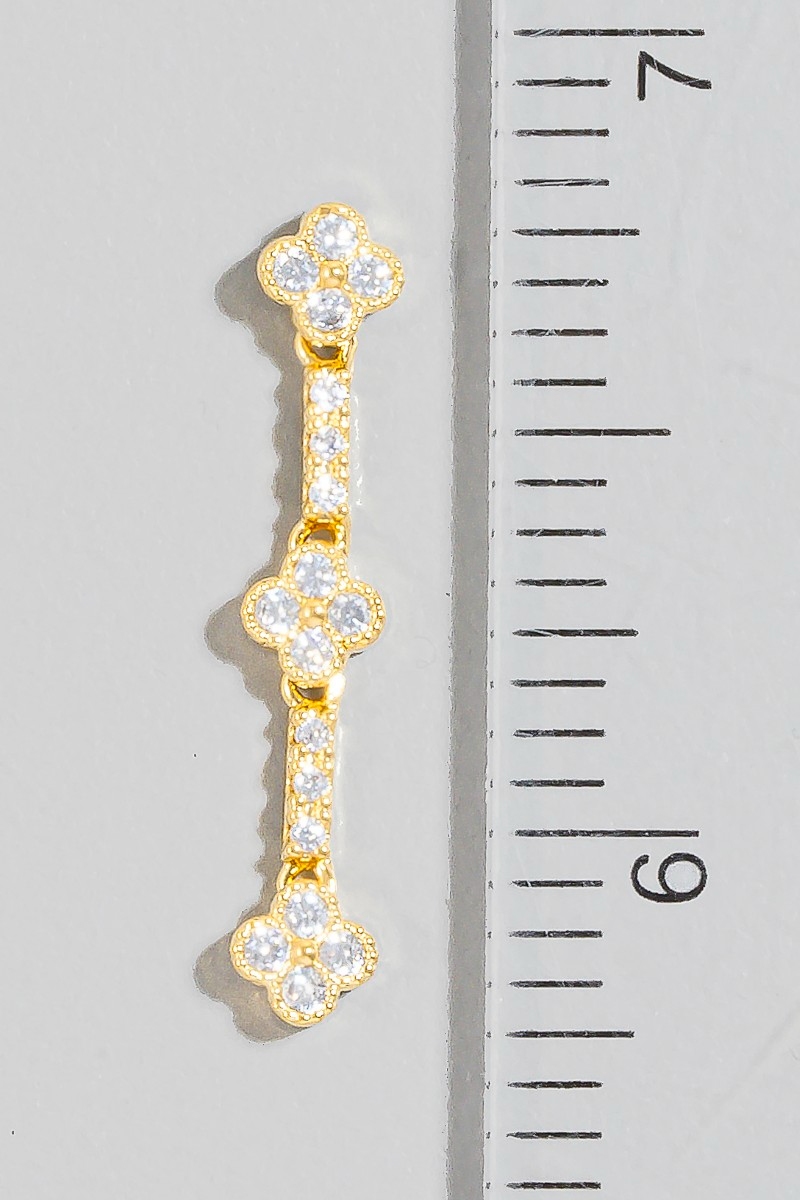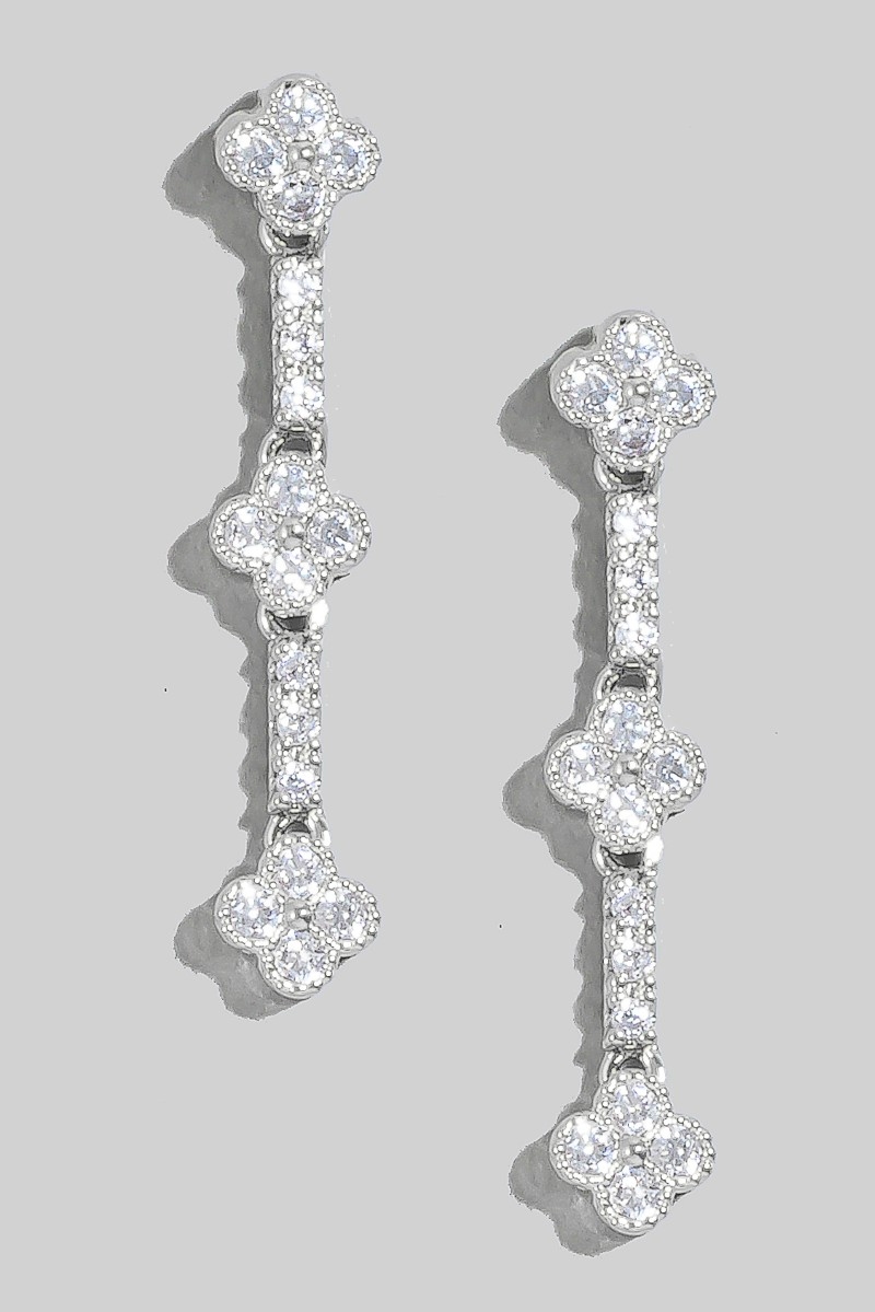 - This pair of dangle earrings introduces a unique cubic zirconia pave clover chain style. Indulge in the allure of exquisite craftsmanship as this pair of dangle earrings effortlessly adds a touch of luxury to your attire.