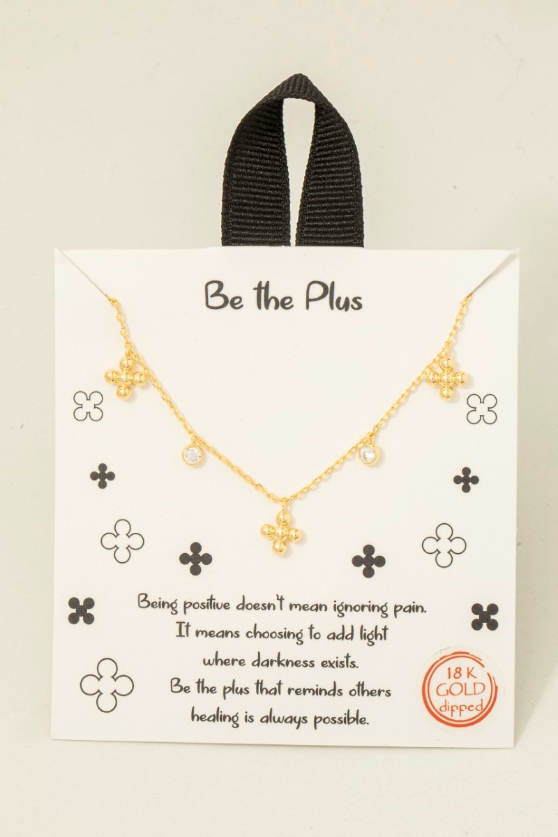 - This chain necklace displays a fashionable gold dipped clover and cubic zirconia station charms style. Immerse yourself in fashion finesse with this statement chain necklace.
