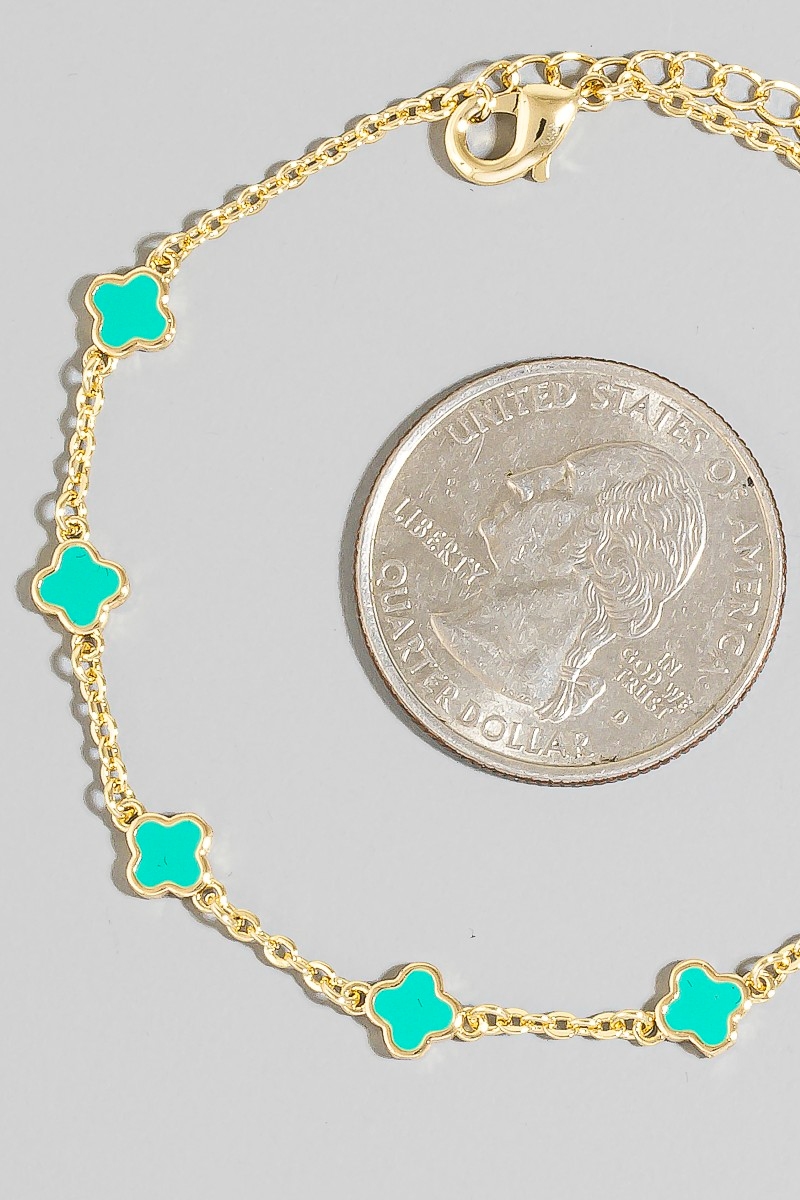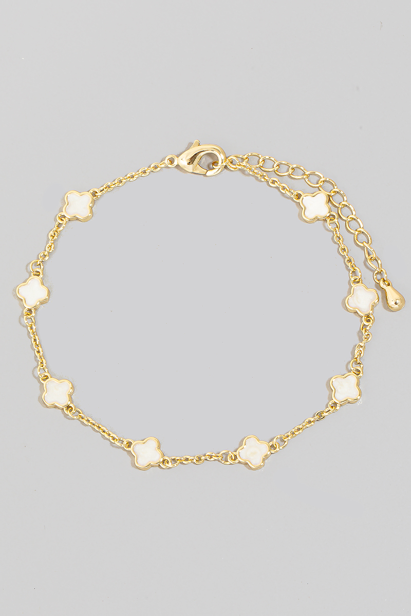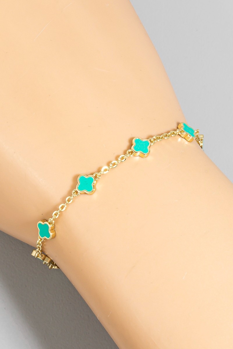 - This chain bracelet features a fashionable gold dipped station clover charms style. Discover the perfect balance of subtlety and flair as this chain bracelet effortlessly completes your look.