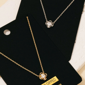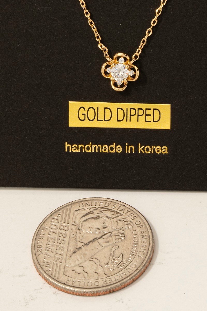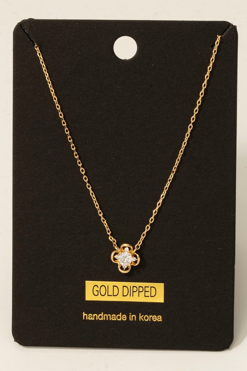 - This necklace introduces a unique gold dipped cubic zirconia cluster clover pendant style. Experience the joy of accessorizing with this piece that effortlessly combines versatility and charm.