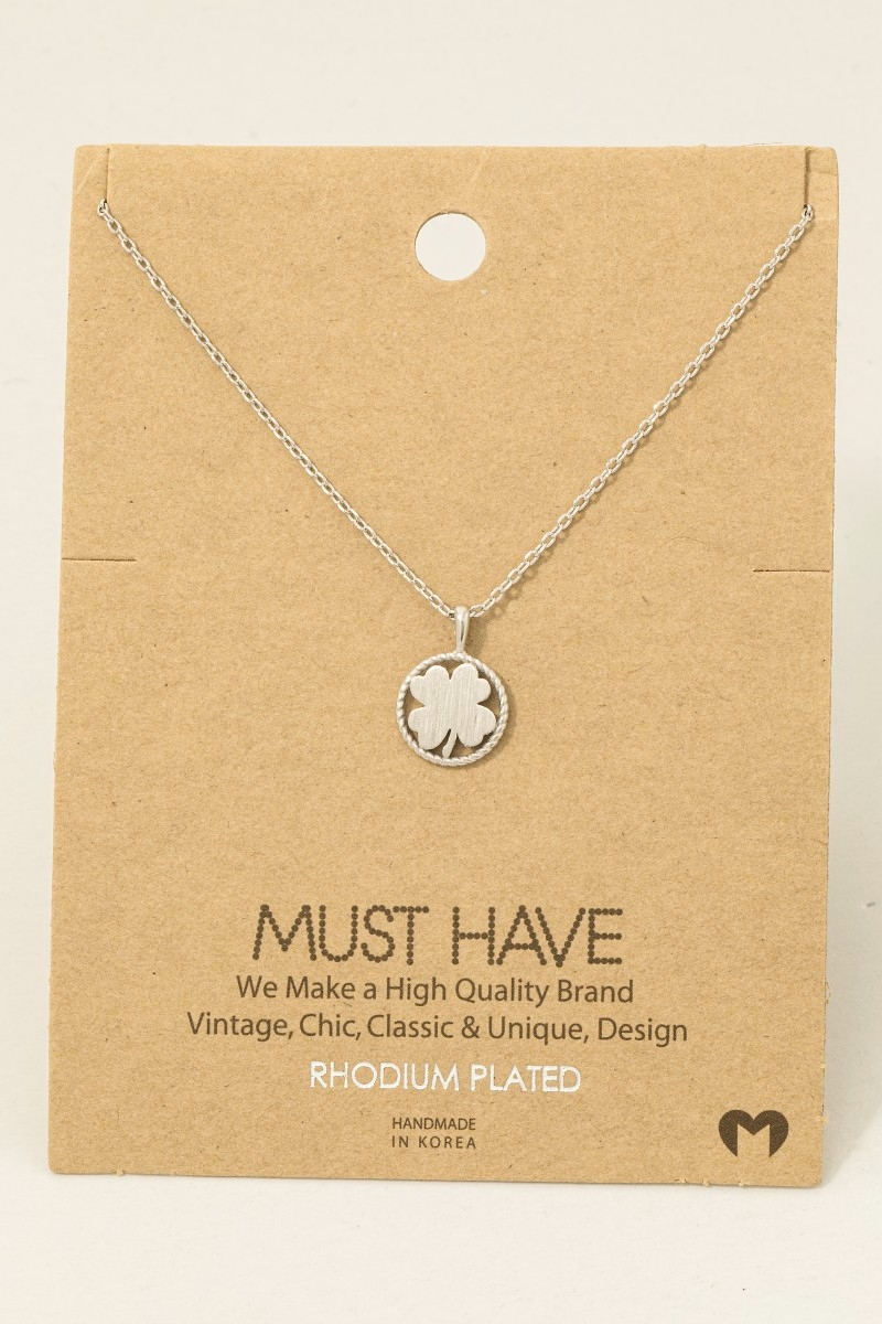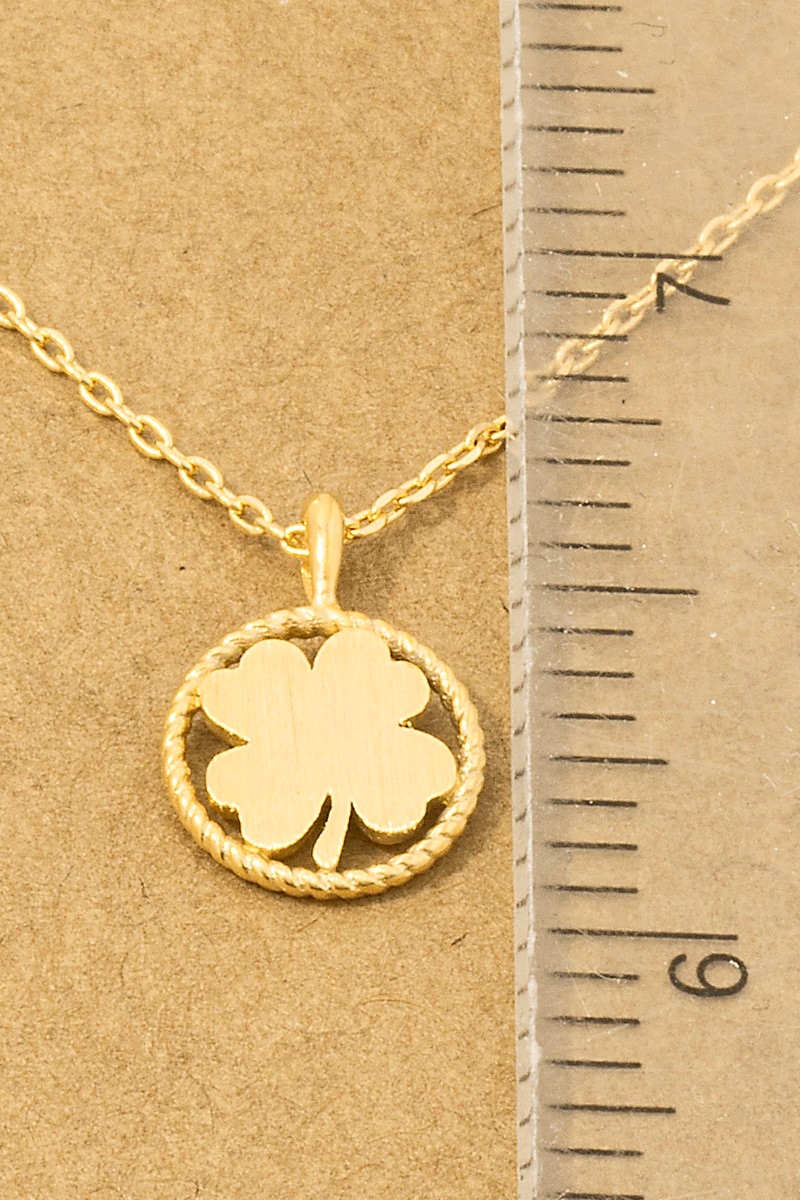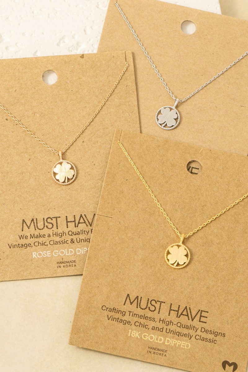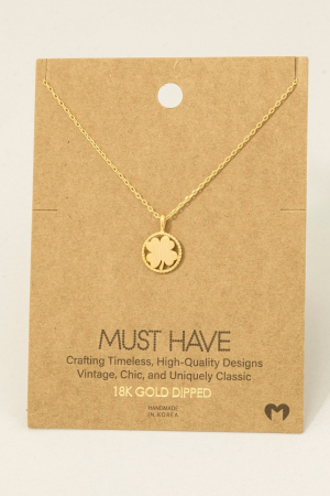 - This trending necklace features a fashionable gold dipped four leaf clover coin pendant necklace style. Embark on a journey of sartorial refinement as this trending necklace effortlessly complements your fashion sense.