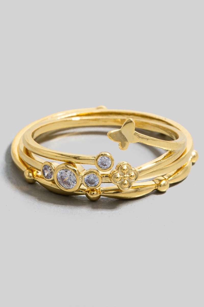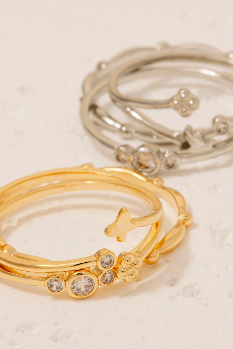 - This ring set introduces a unique 3pc mixed clover and butterflies band rings set style. Step into a world of refined taste as this ring set effortlessly refines the details of your outfit.