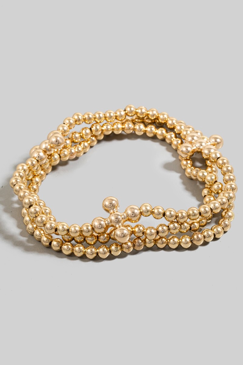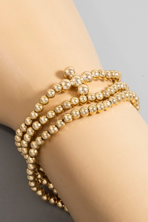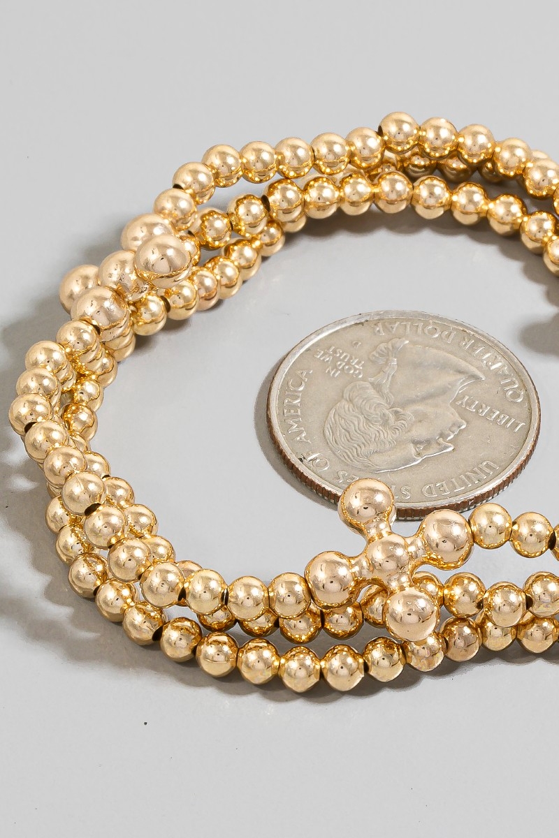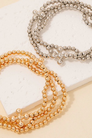 - This bracelet brings a stunning large metallic bead cross charms layered set style. Delight in the intricate details that make this bracelet an essential element in expressing your fashion identity.