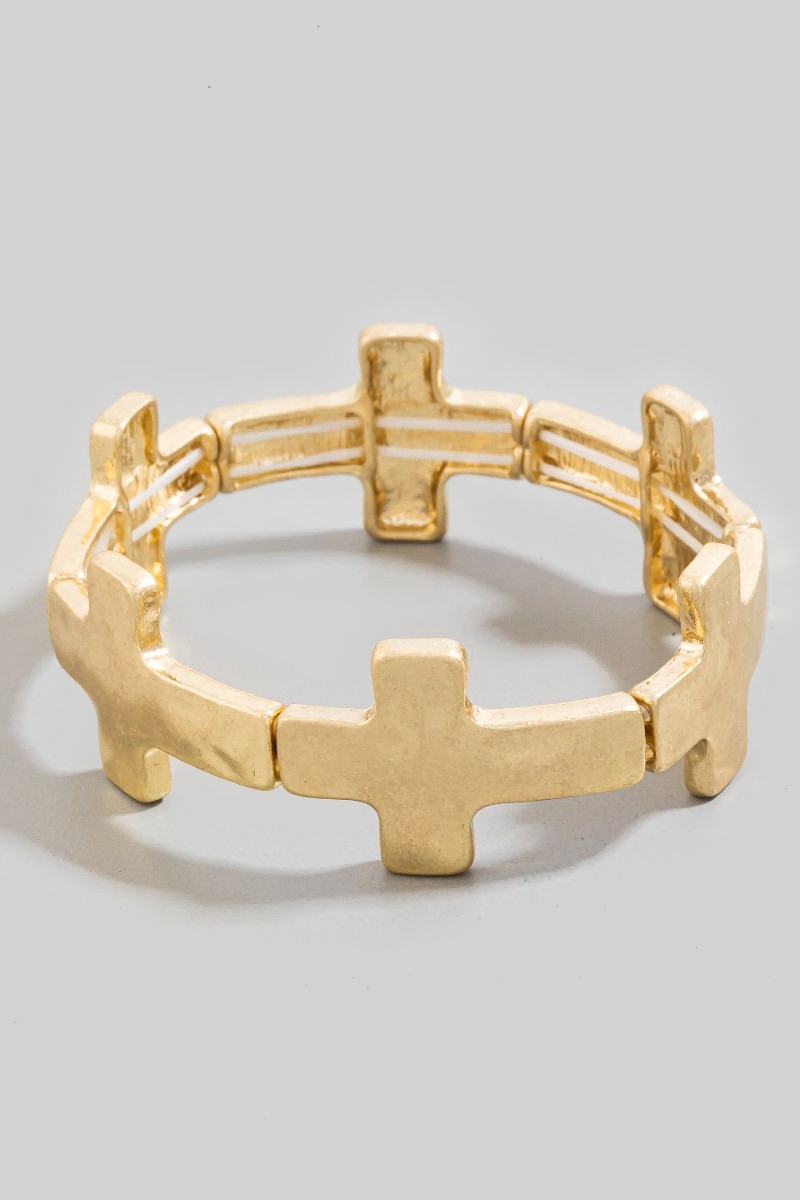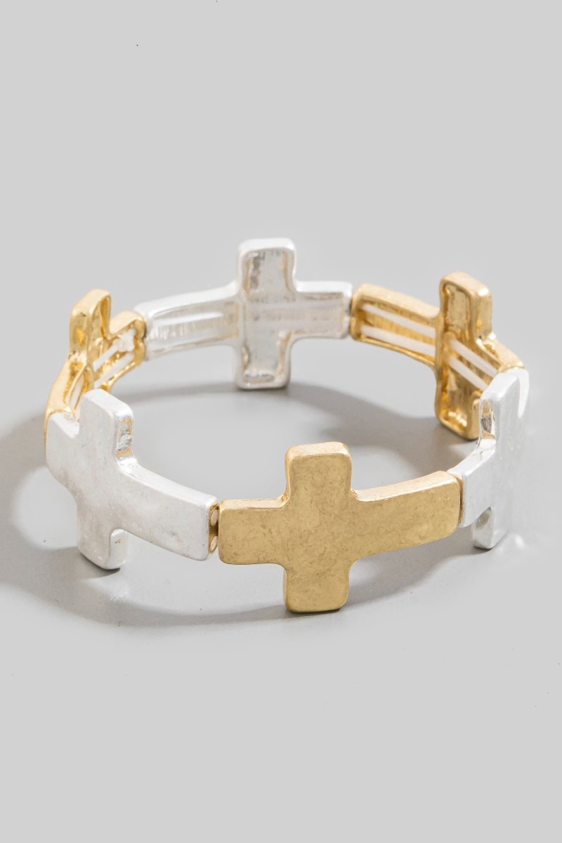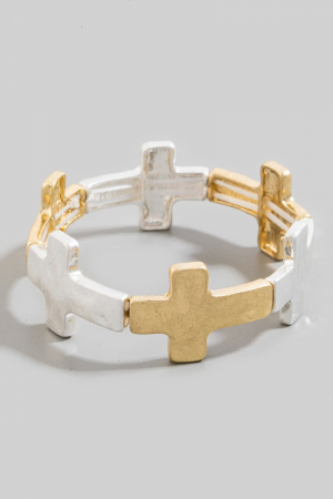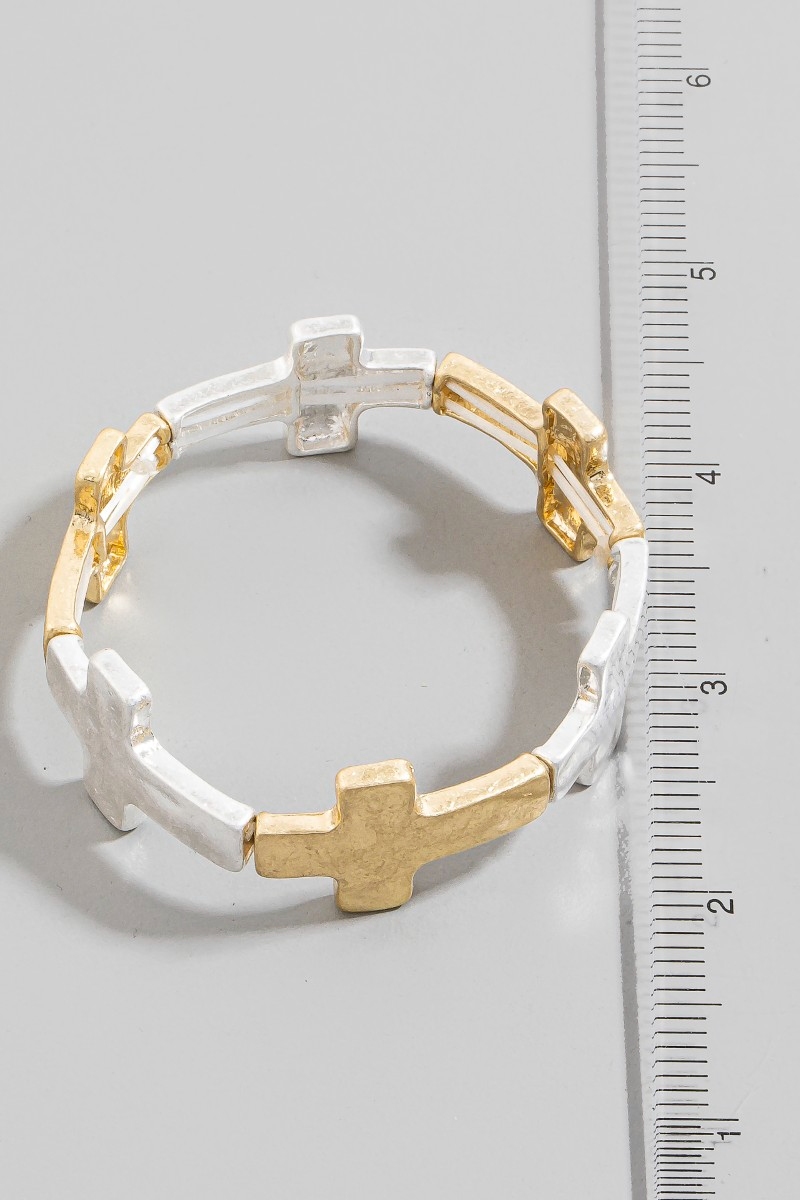 Metallic Hammered Cross Toggle Chain Bracelet