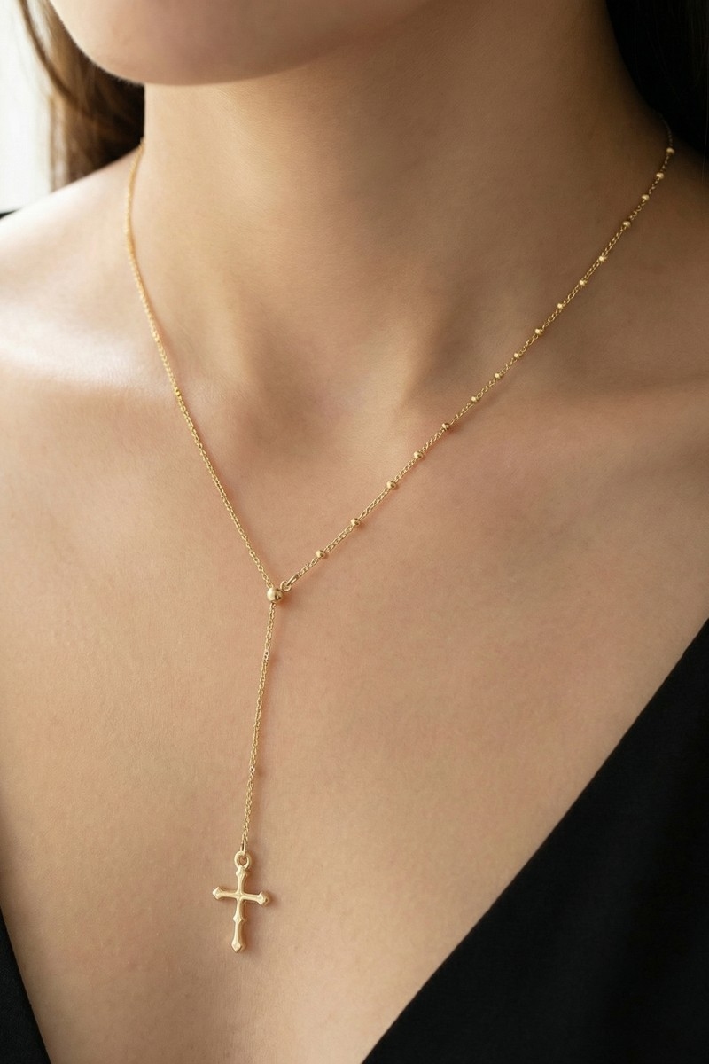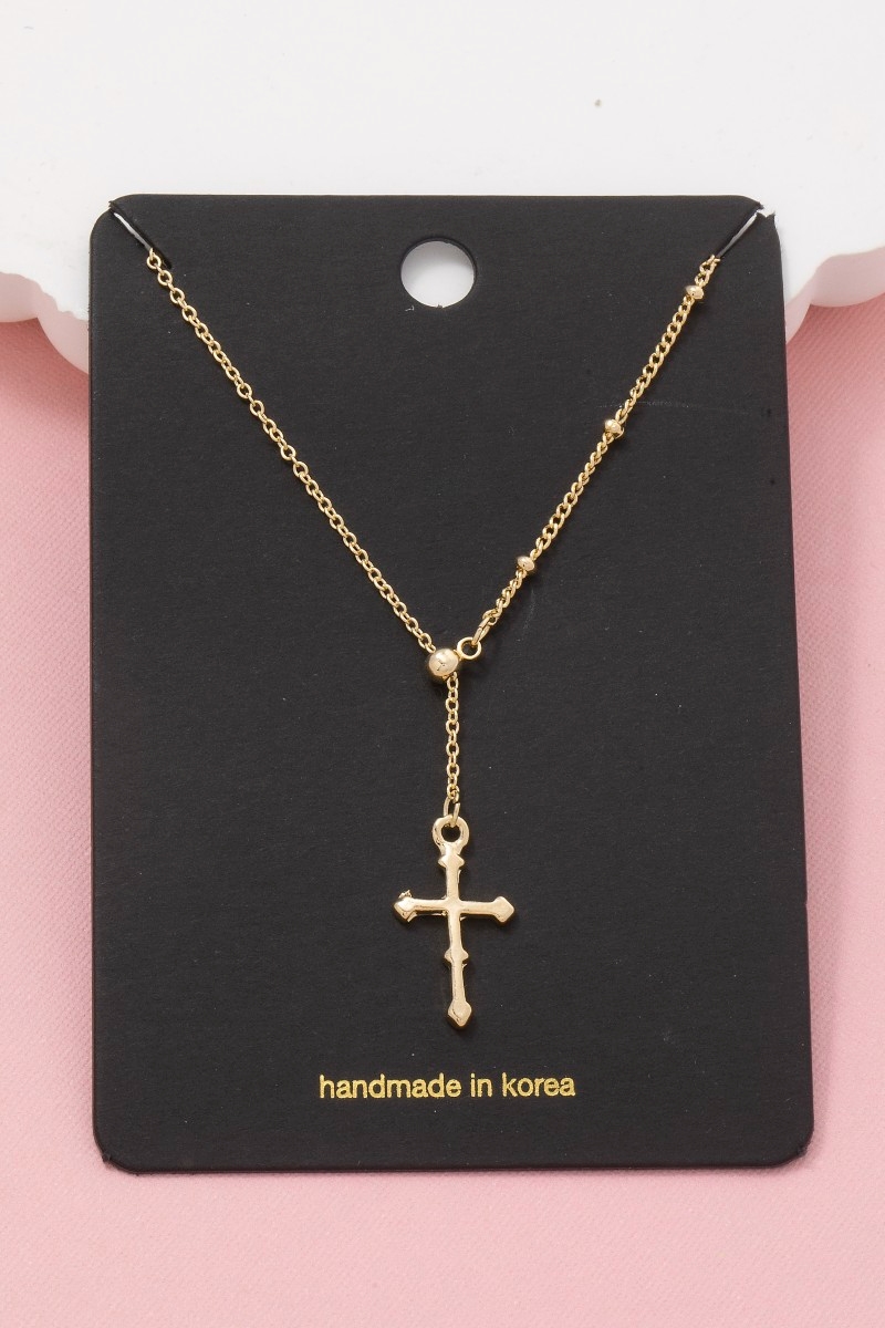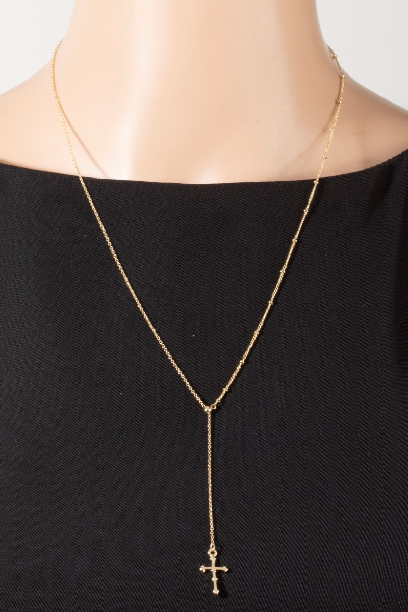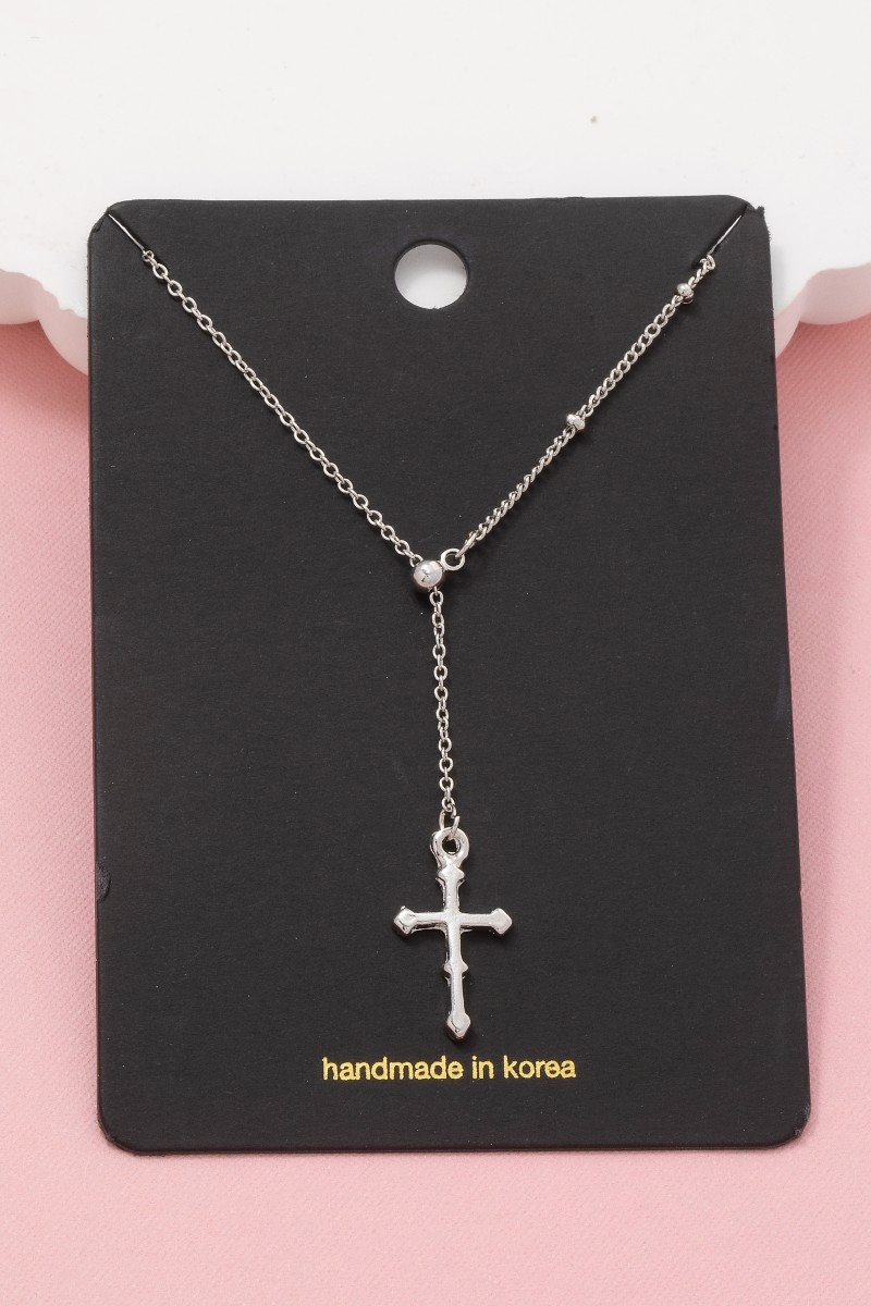 - This chain necklace showcases a unique cross pendant lariat style. Embark on a journey of sartorial refinement as this chain necklace effortlessly complements your fashion sense.