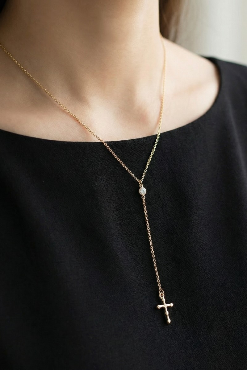 - This chain necklace showcases a unique cross pendant y style. Witness the transformative power of accessories as this piece effortlessly redefines your fashion narrative.