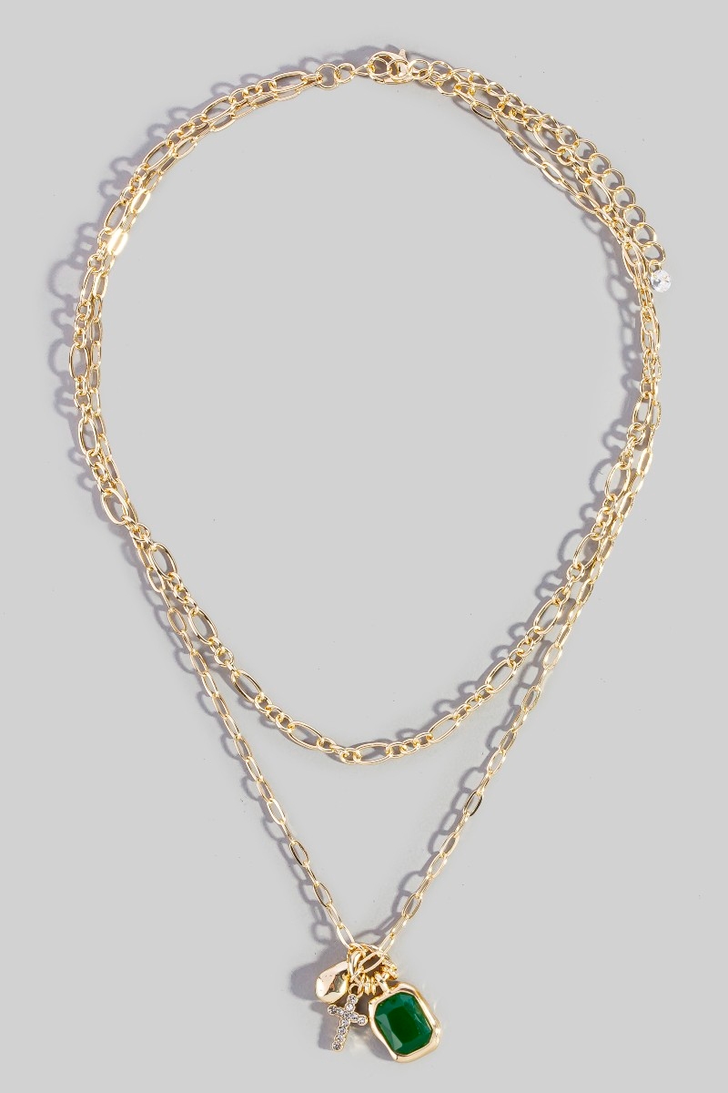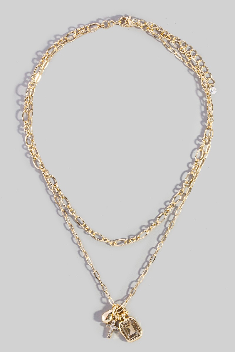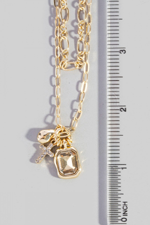 • This chain necklace showcases a timeless crystal & cross charm double layer link style. Indulge in the artistry of accessorizing with this unique piece.