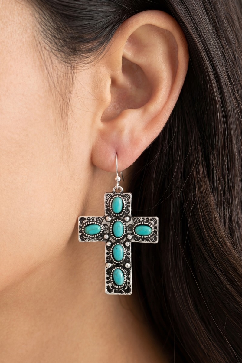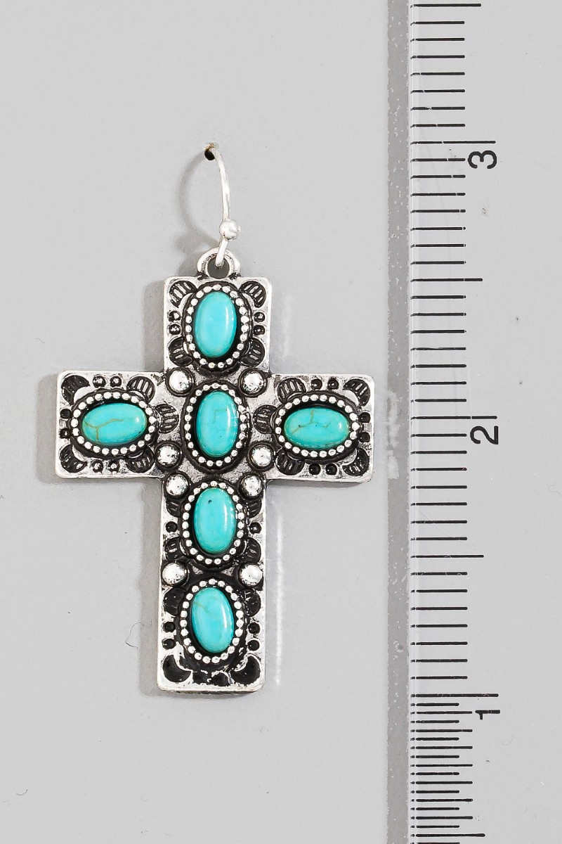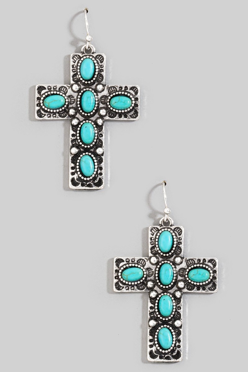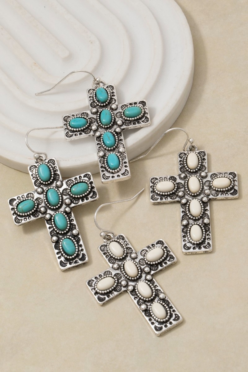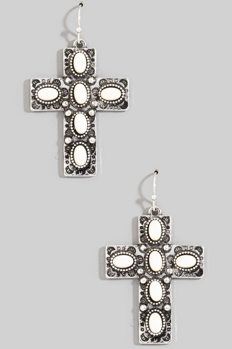 - This pair of dangle earrings introduces a unique oval stone studded cross style. Experience refined sophistication with this understated yet stylish piece.