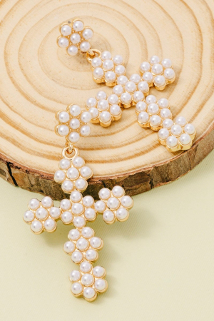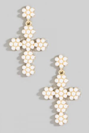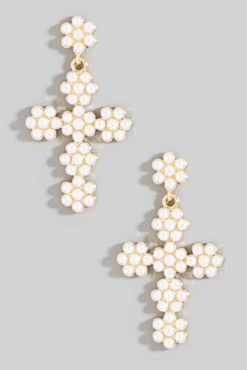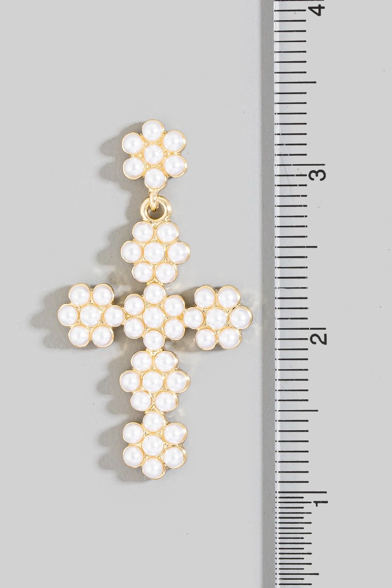 - This pair of drop earrings showcases a unique floral pearl beaded cross style. Celebrate individual style with this versatile, eye-catching addition.