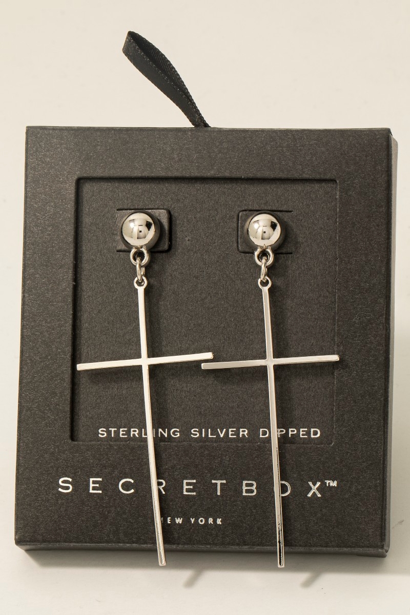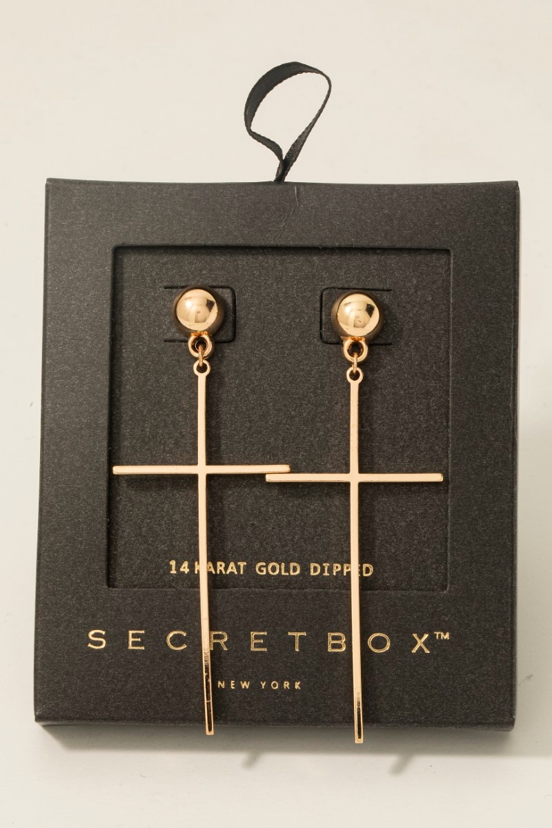 - This pair of dangle earrings brings a unique secret box gold dipped dainty cross style. Delight in the nuanced details that make this pair of dangle earrings a testament to fine design and impeccable taste.