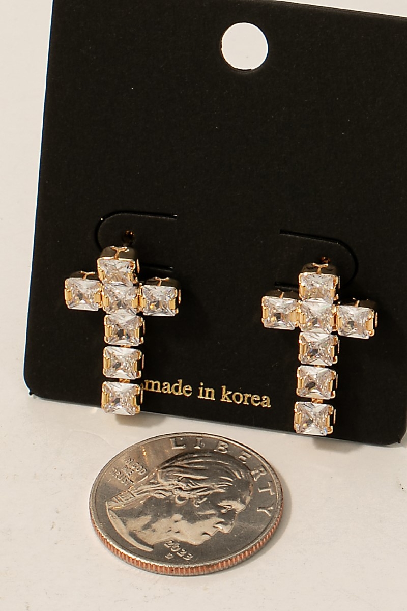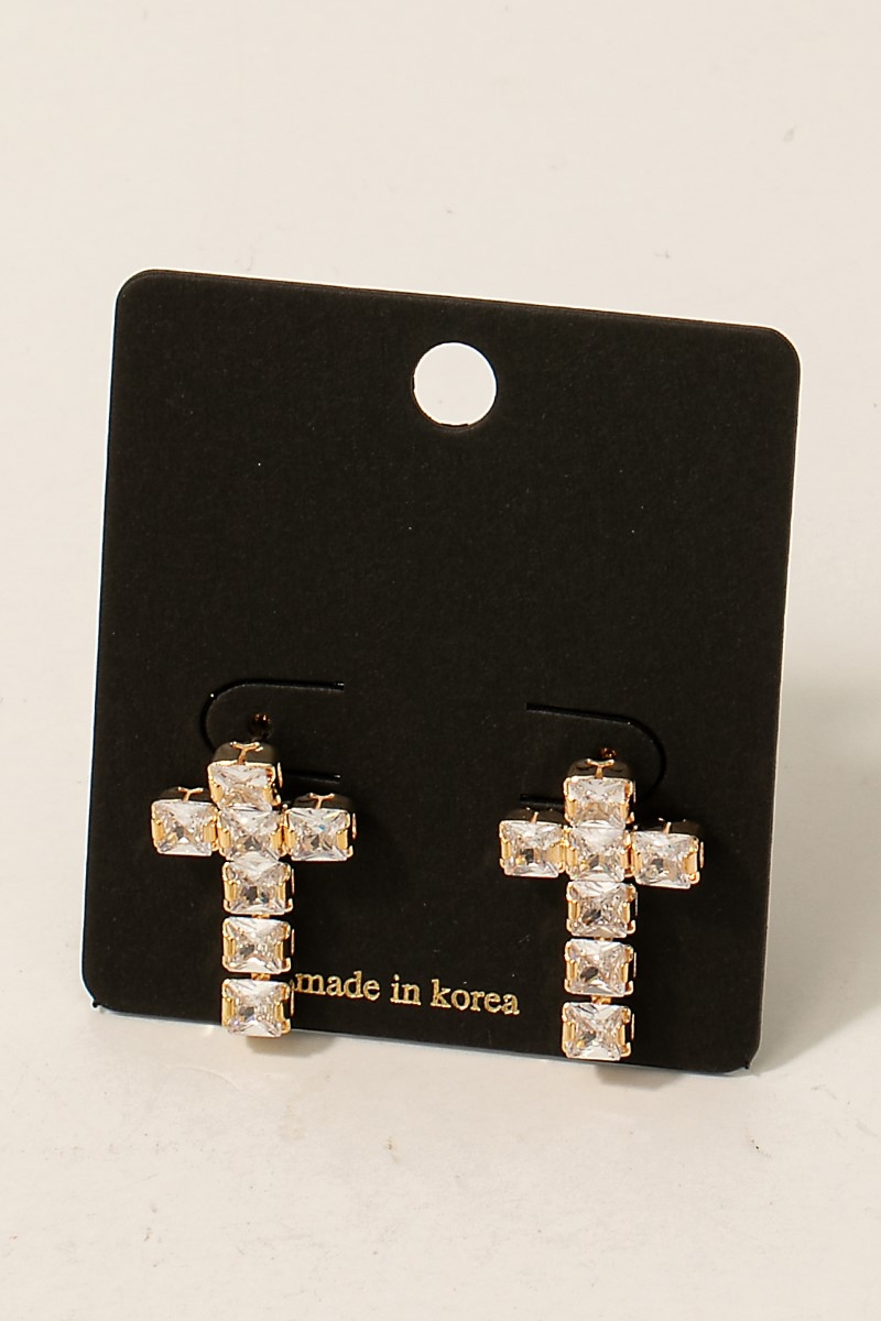 - This pair of drop earrings introduces a stunning square faceted glass gems cross stud style. Experience the joy of accessorizing with this piece that effortlessly combines versatility and charm.